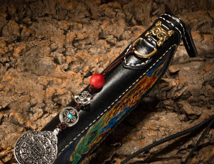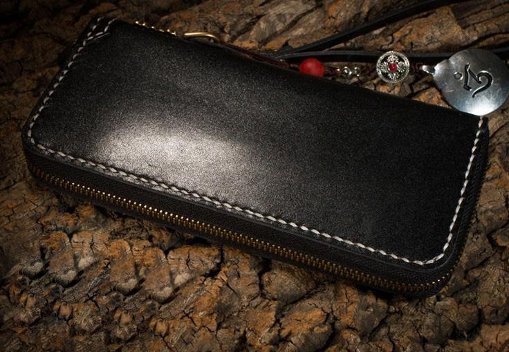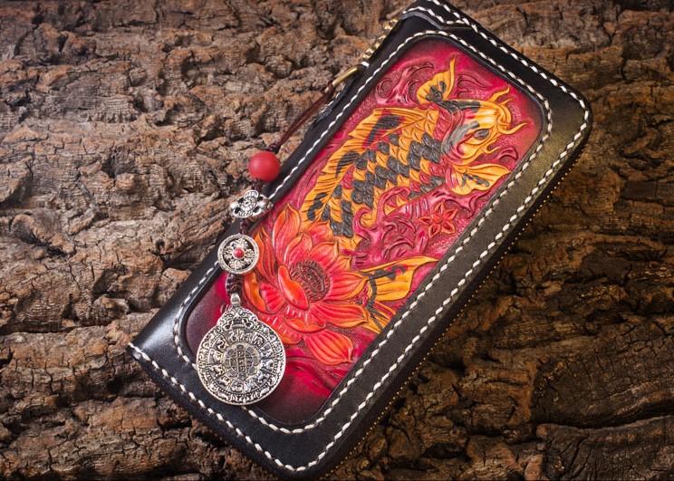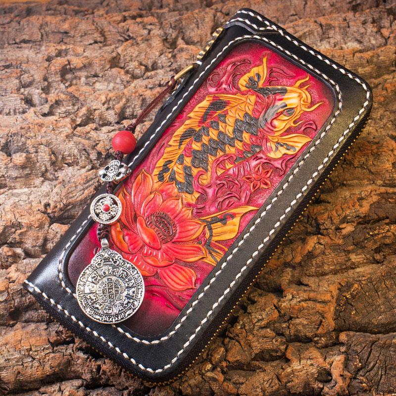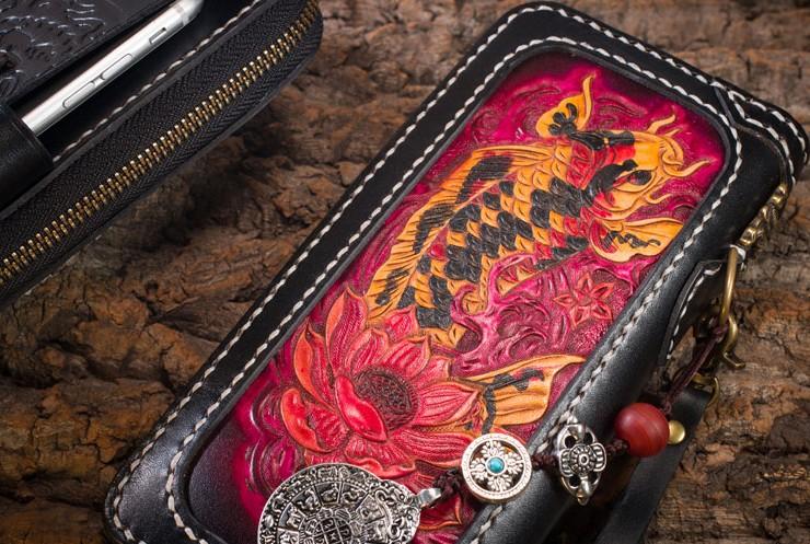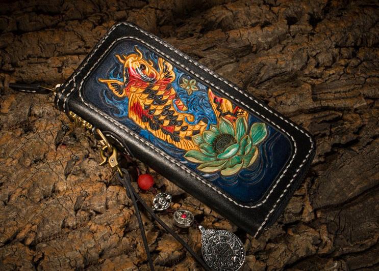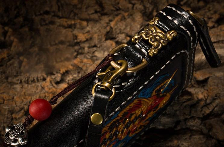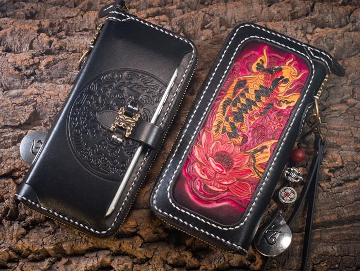 Design: Handmade Leather Carp Mens Chain Biker Wallet Cool Leather Wallet Long Phone Wallets for Men