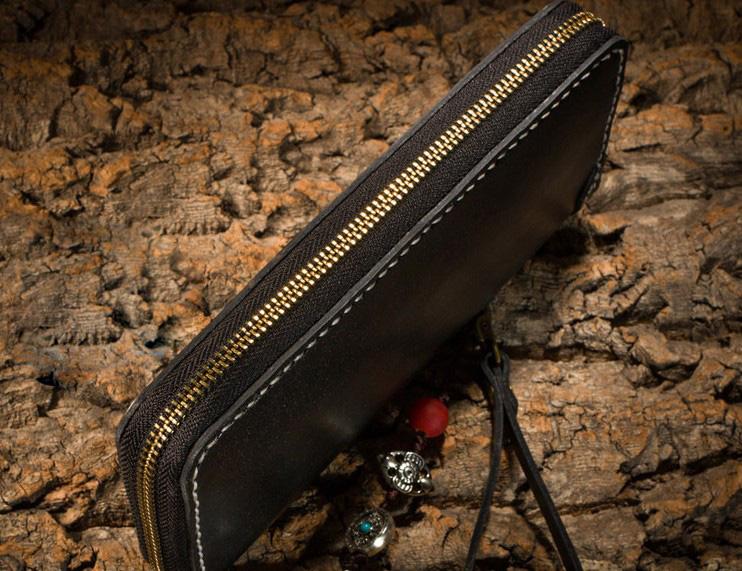 Style: Handmade Leather Carp Mens Chain Biker Wallet Cool Leather Wallet Long Phone Wallets for Men