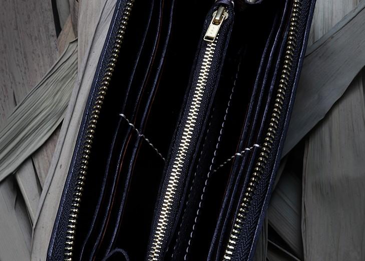 Slots: 2 full size bill slot, 12 card holders, 1 zipper slot