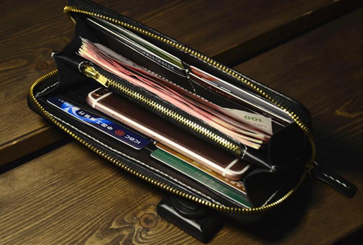Handmade Leather Carp Mens Chain Biker Wallet Cool Leather Wallet Long Phone Wallets for Men