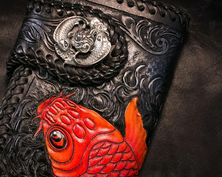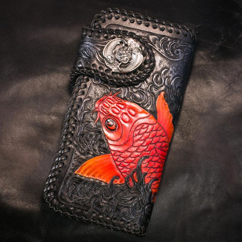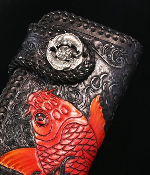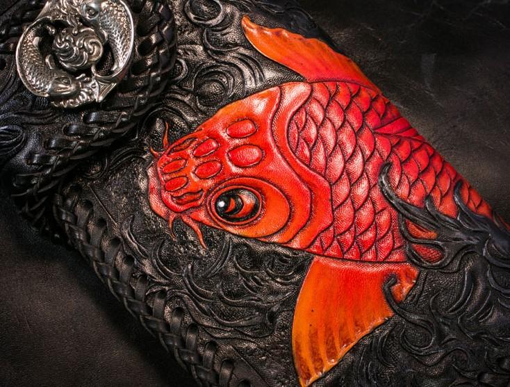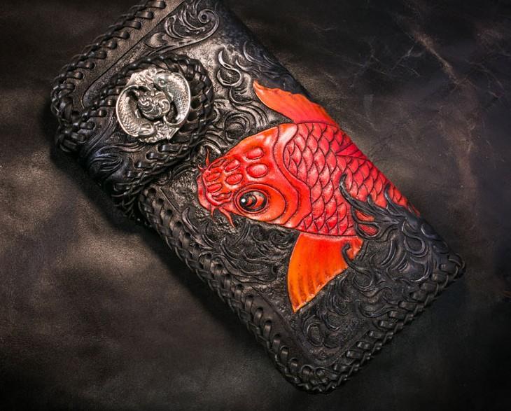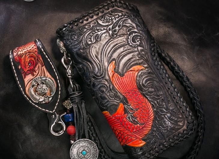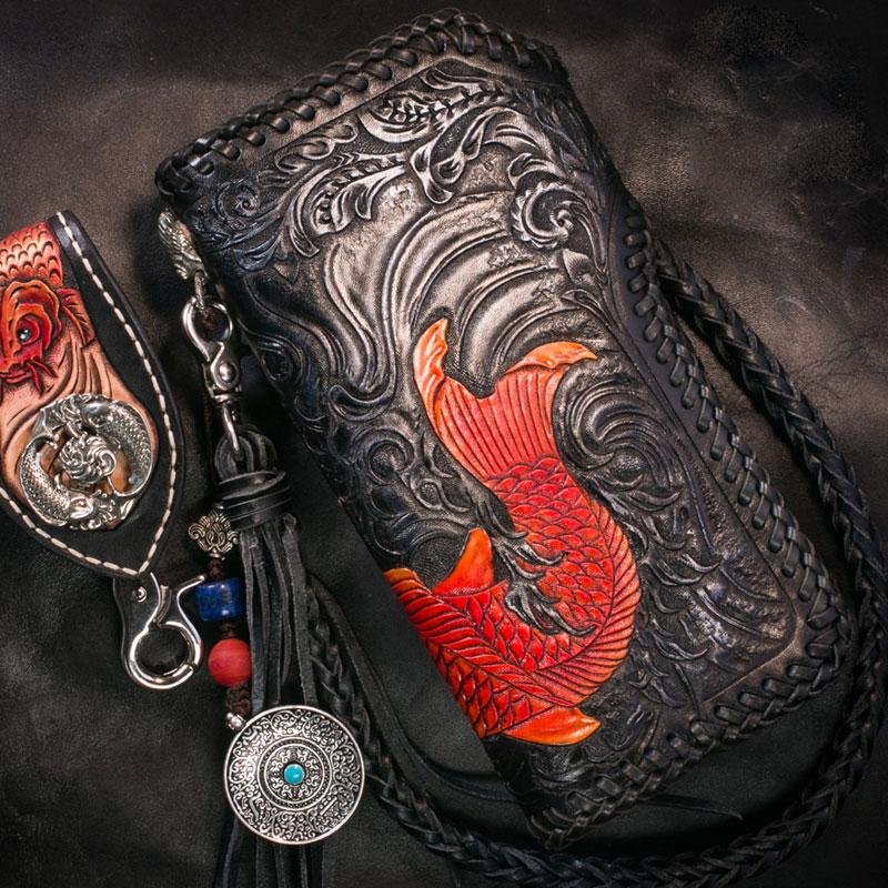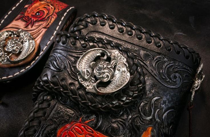 Design: Handmade Leather Carp Mens Chain Biker Wallet Cool Leather Wallet With Chain Wallets for Men