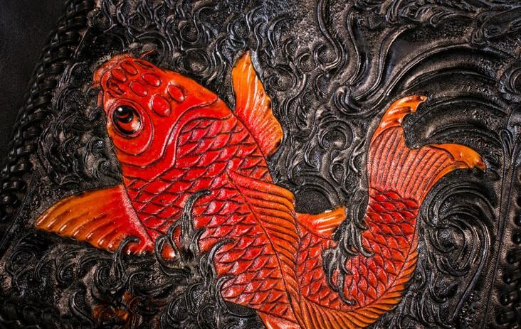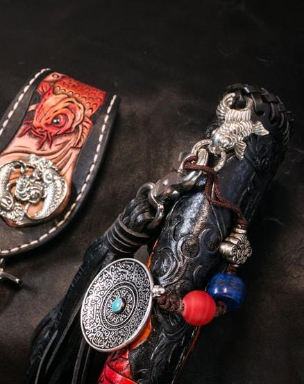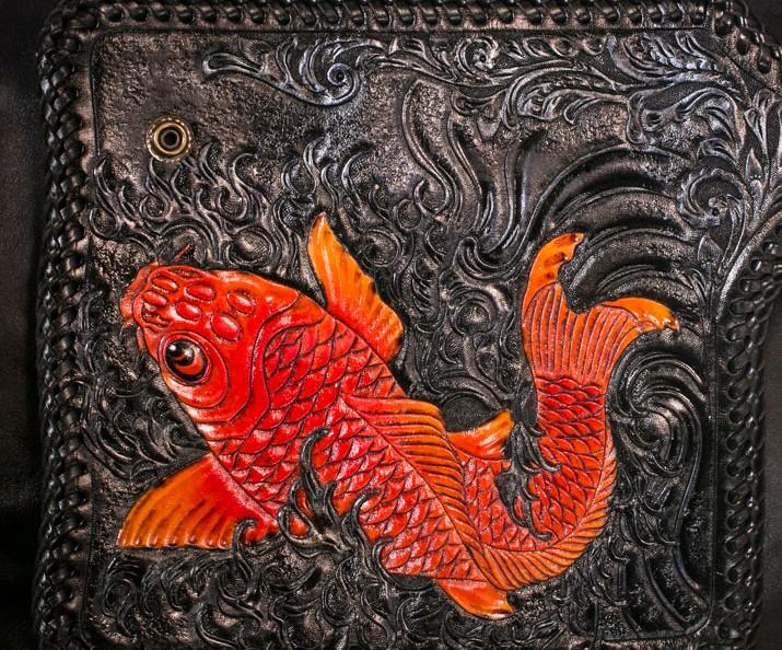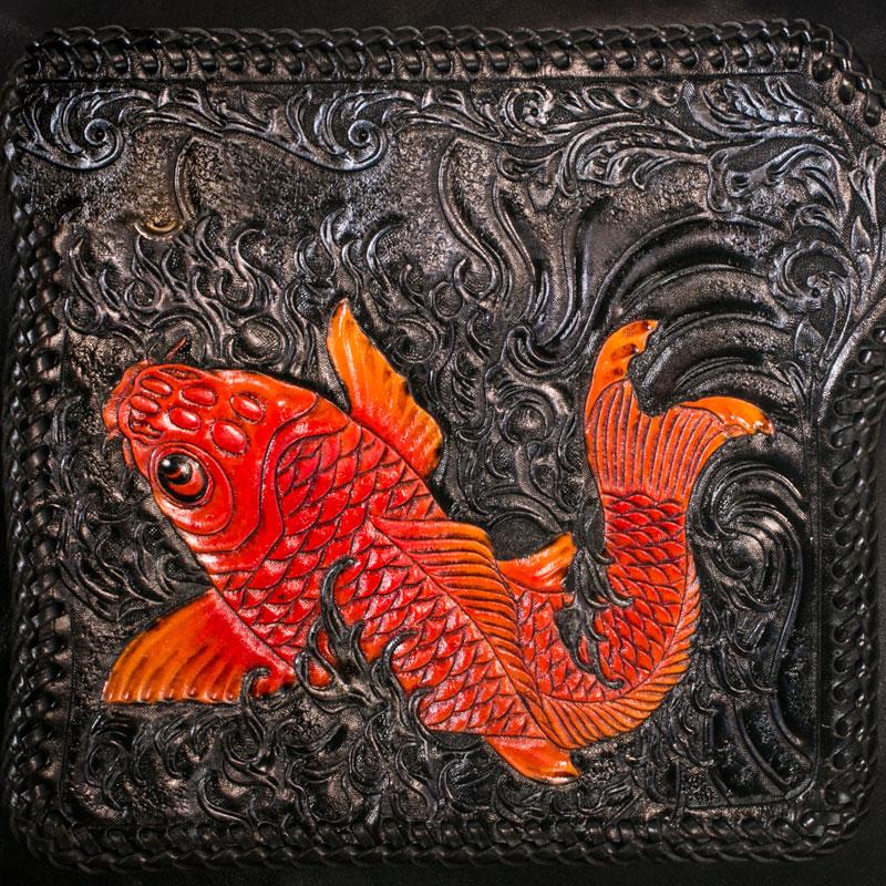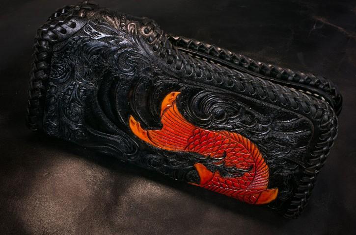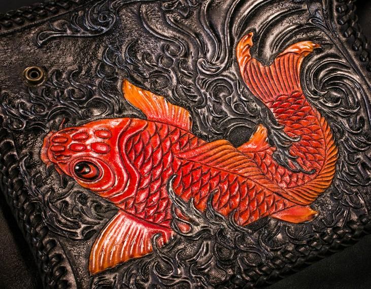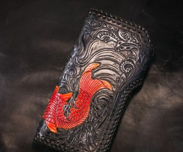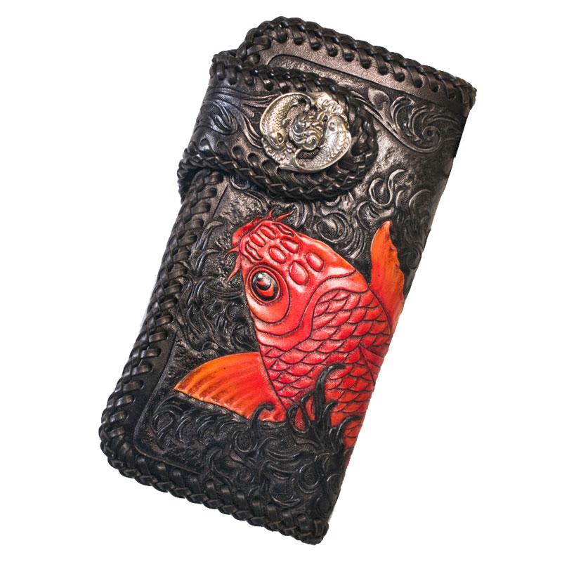 Design: Handmade Leather Carp Mens Chain Biker Wallet Cool Leather Wallet With Chain Wallets for Men