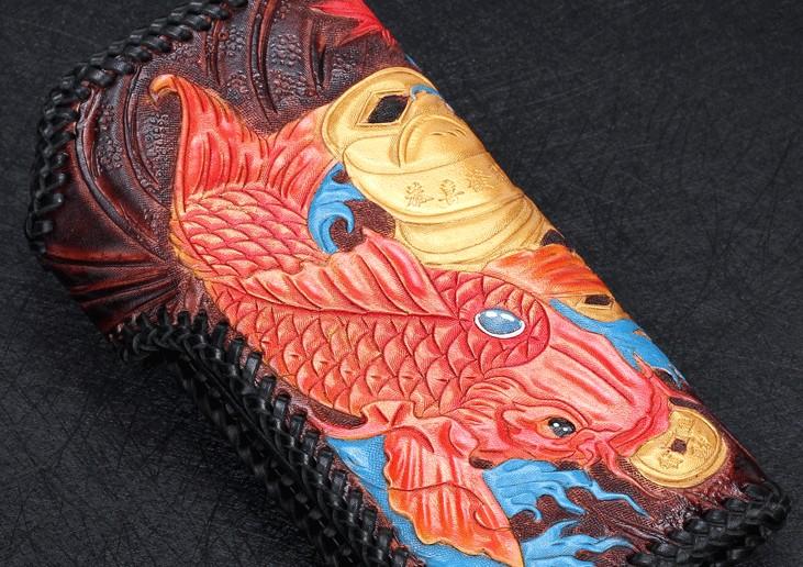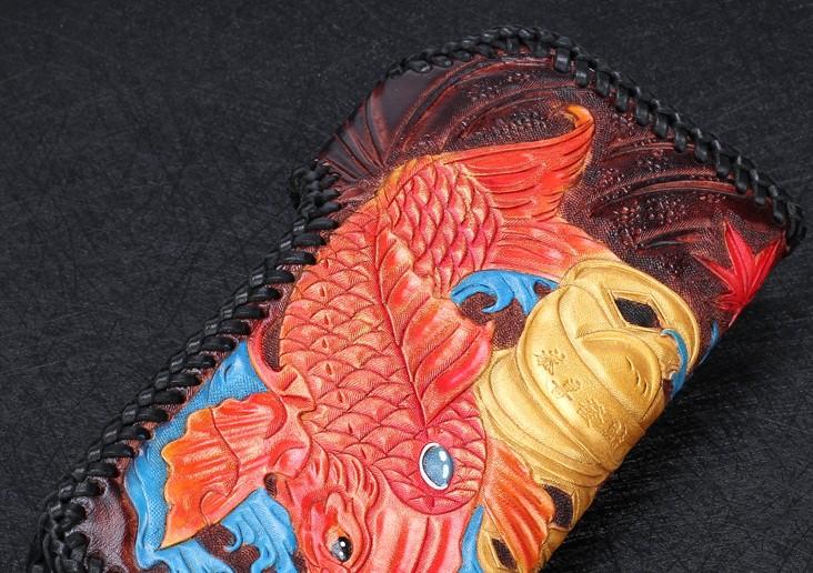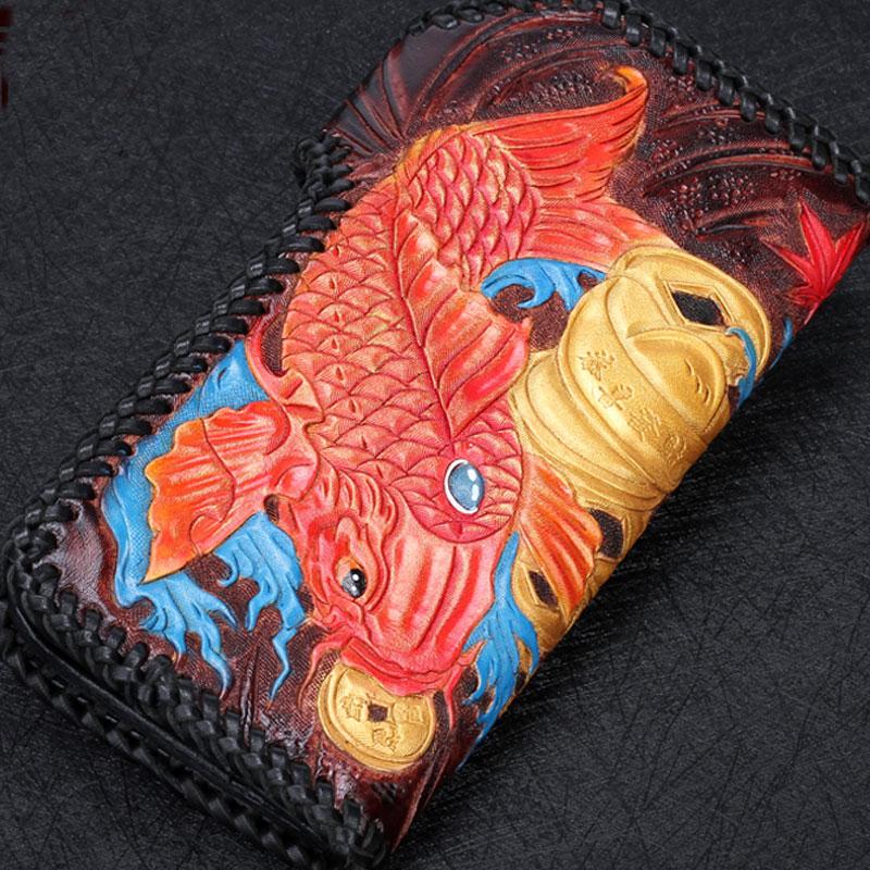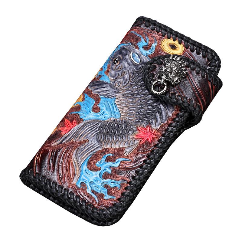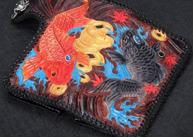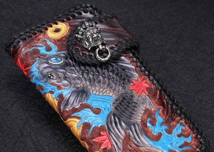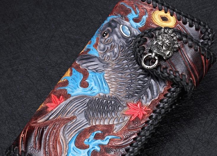 Design: Handmade Leather Carp Mens Chain Biker Wallet Cool Leather Wallet With Chain Wallets for Men