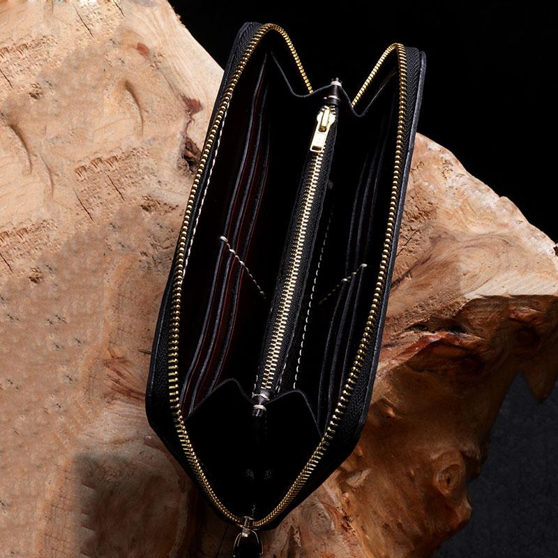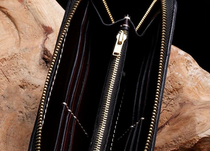 Slots: 2 full size bill slot, 12 card holders, 1 zipper slot