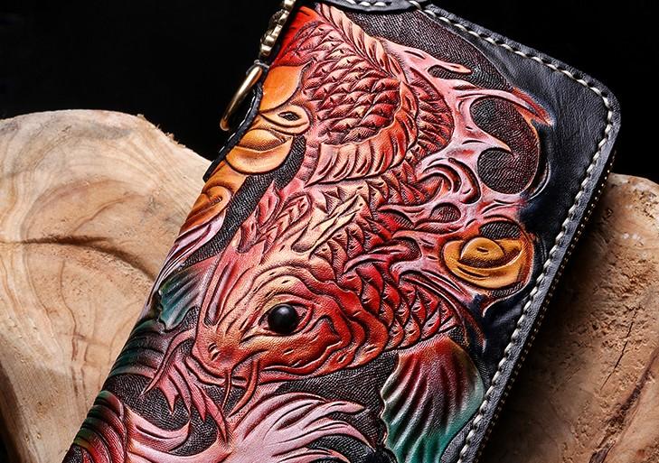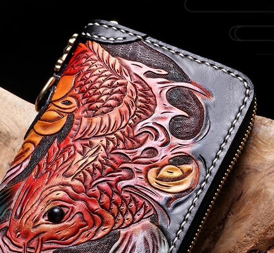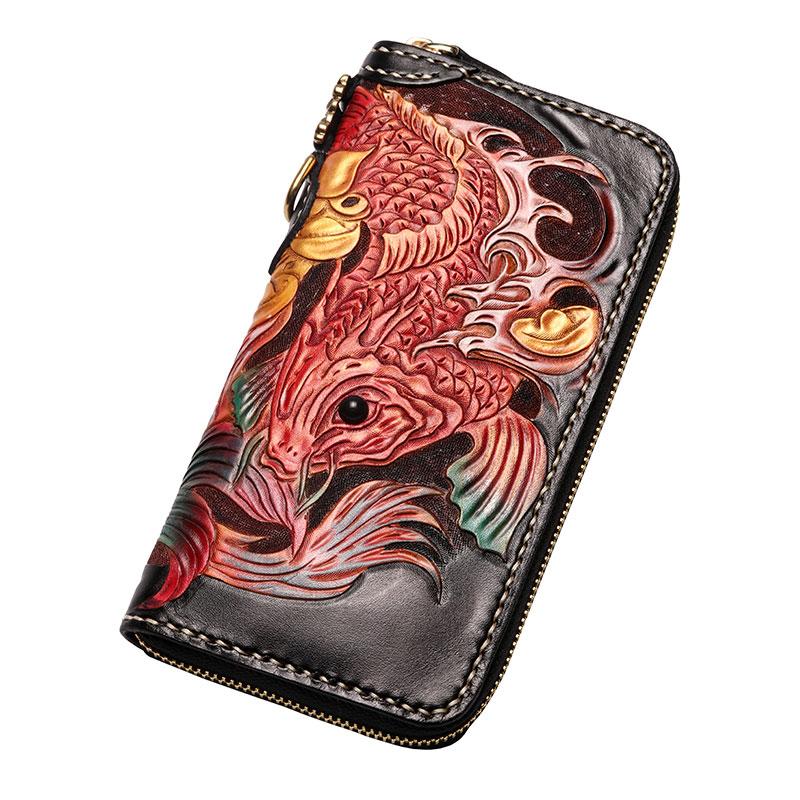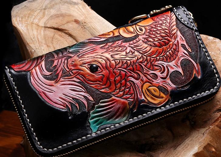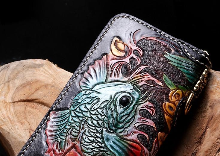 Handmade Leather Carp Mens Chain Biker Wallet Cool Leather Wallet With Chain Wallets for Men