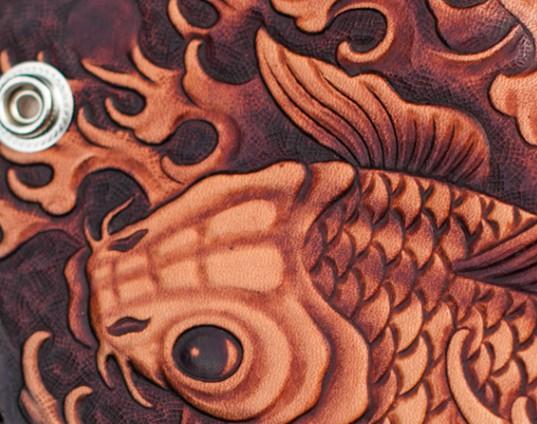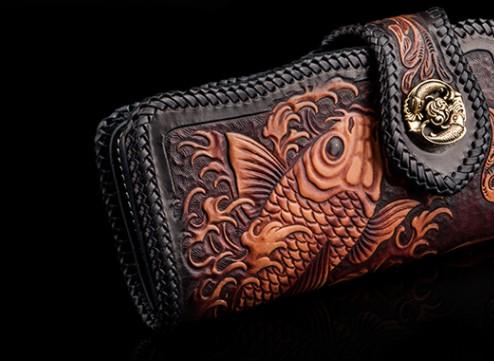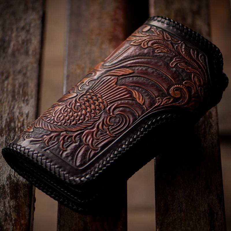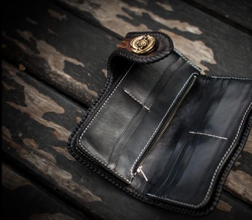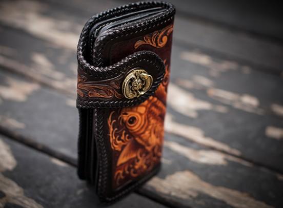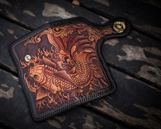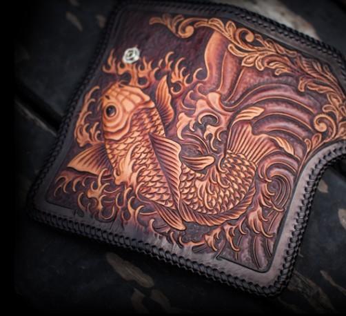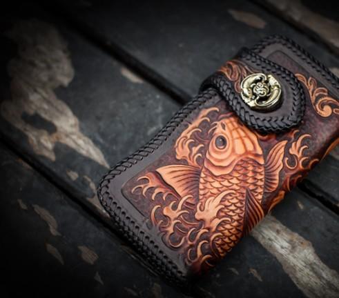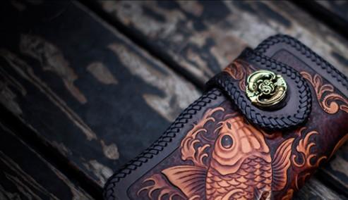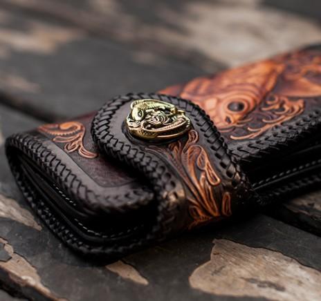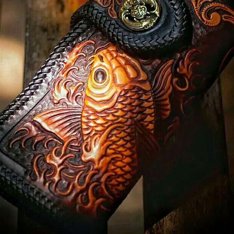 Design: Handmade Leather Carp Mens Chain Biker Wallet Cool Leather Wallet With Chain Wallets for Men