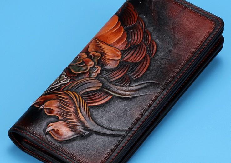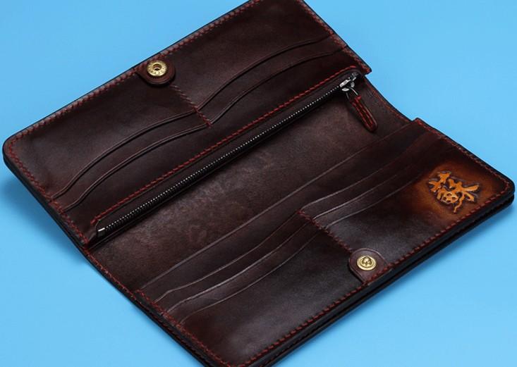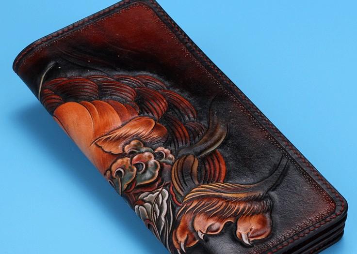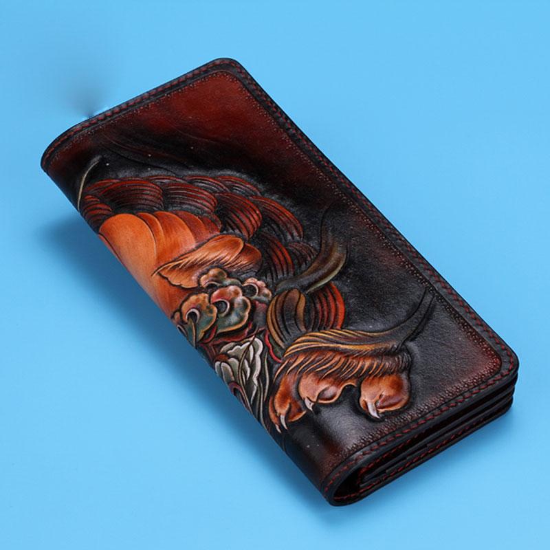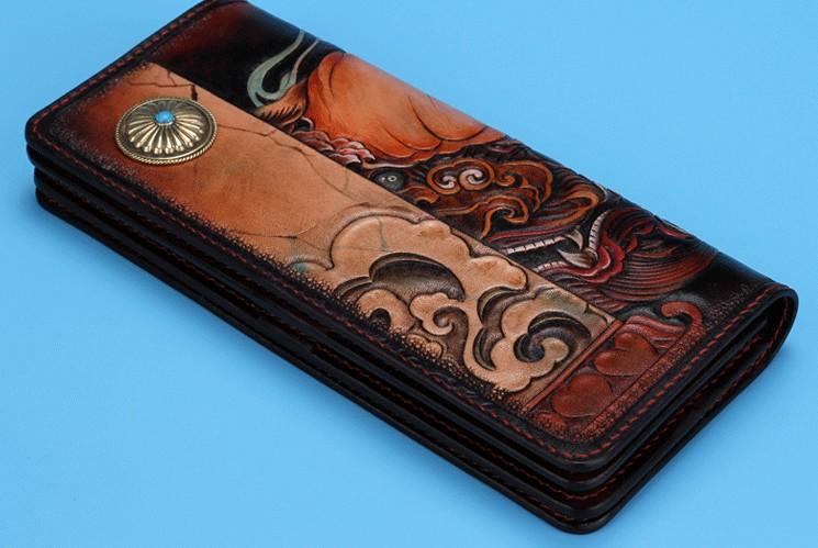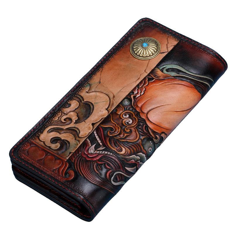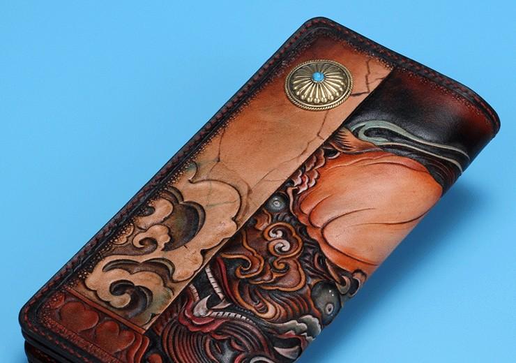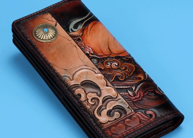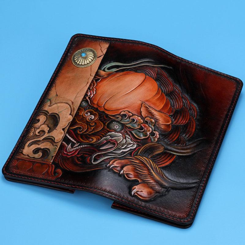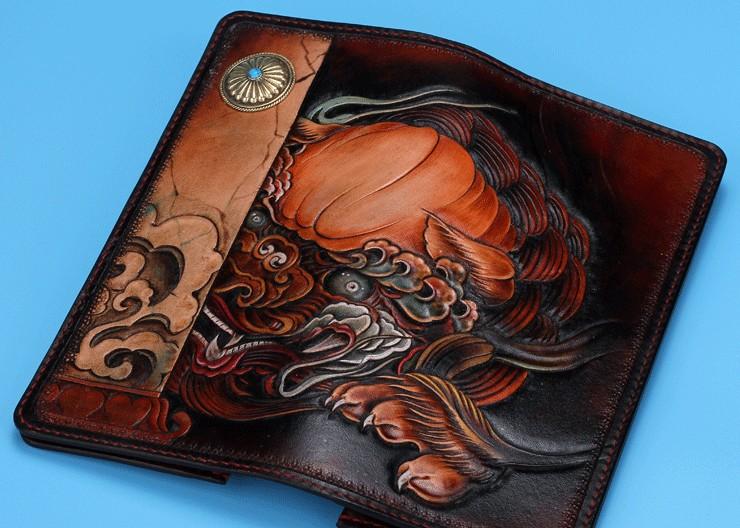 Design: Handmade Leather Chinese Lion Mens Chain Biker Wallet Cool Leather Wallet With Chain Wallets for Men