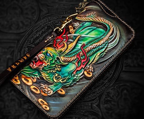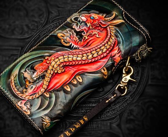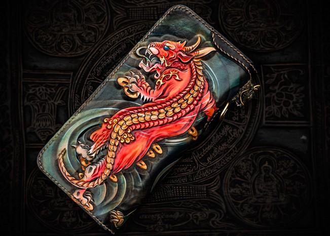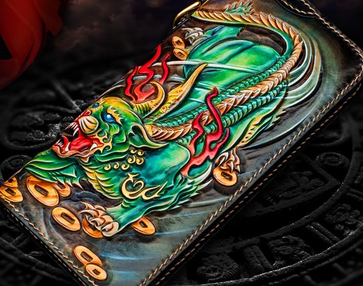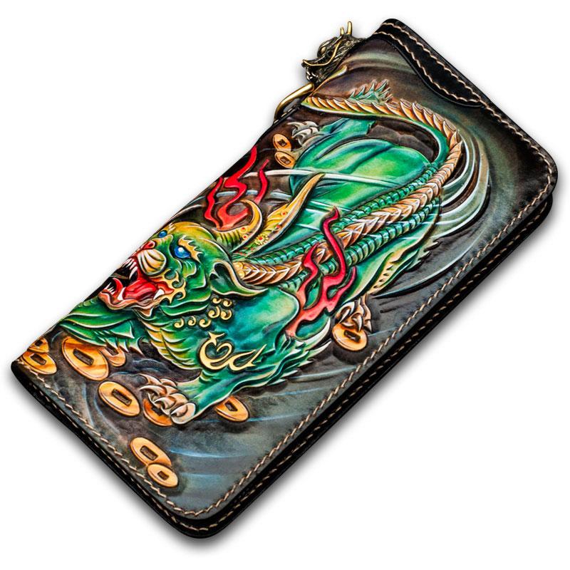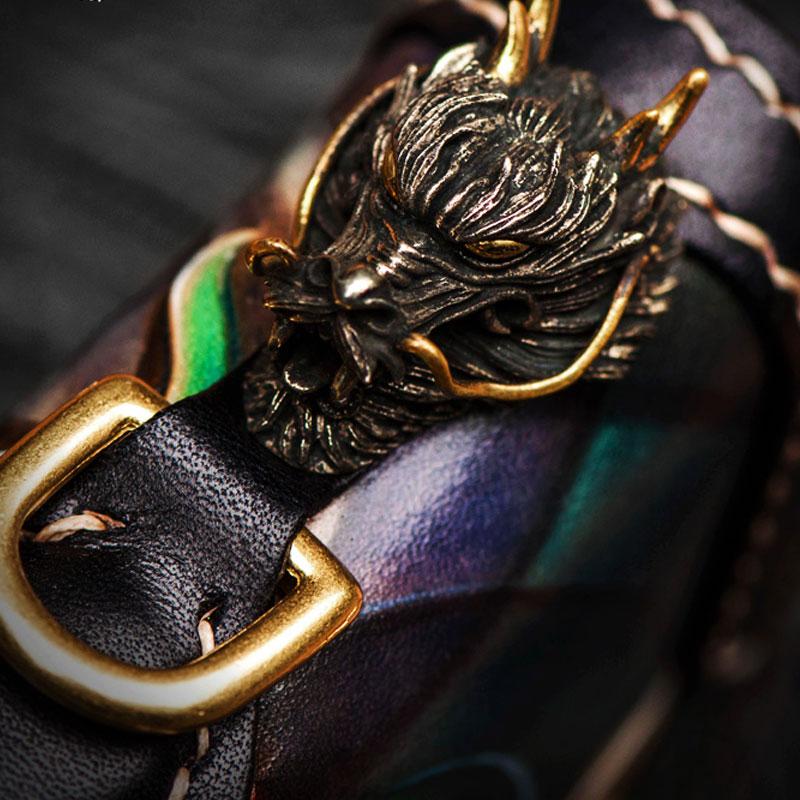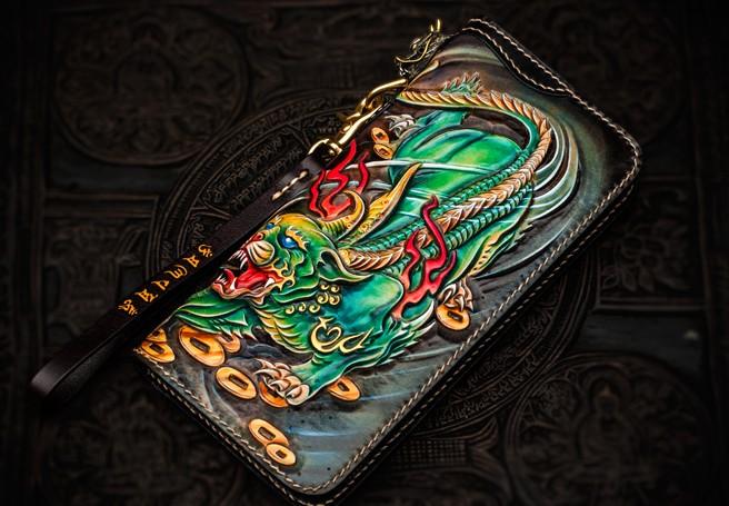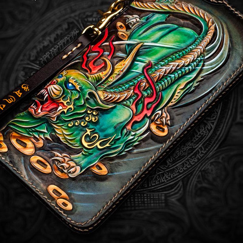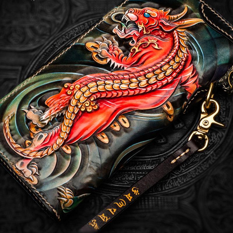 Design: Handmade Leather Chinese Monster Mens Chain Biker Wallet Cool Leather Wallet With Chain Wallets for Men