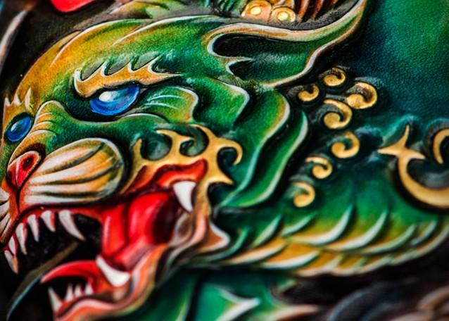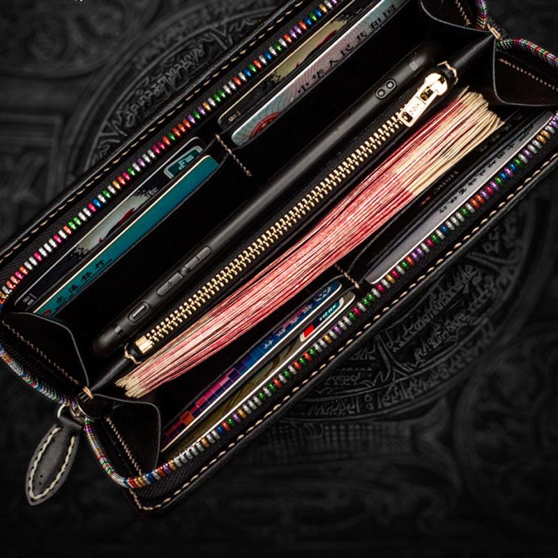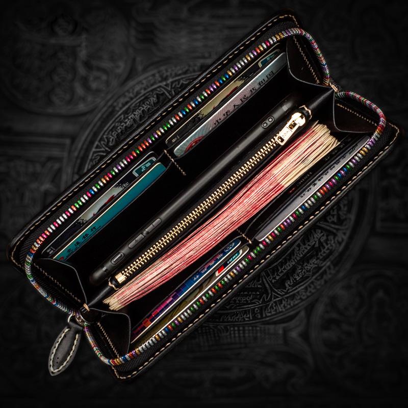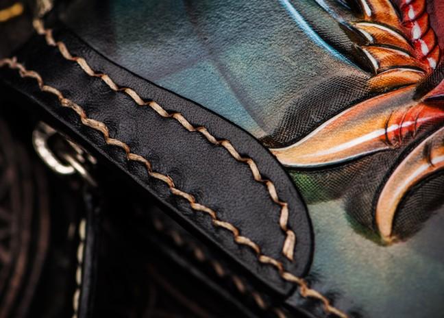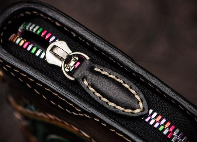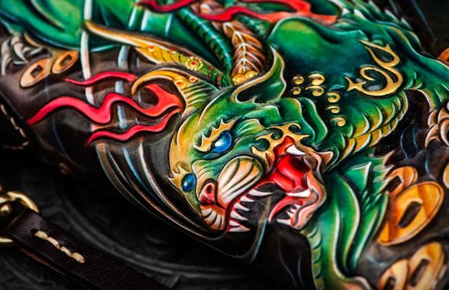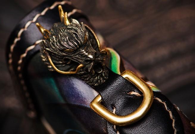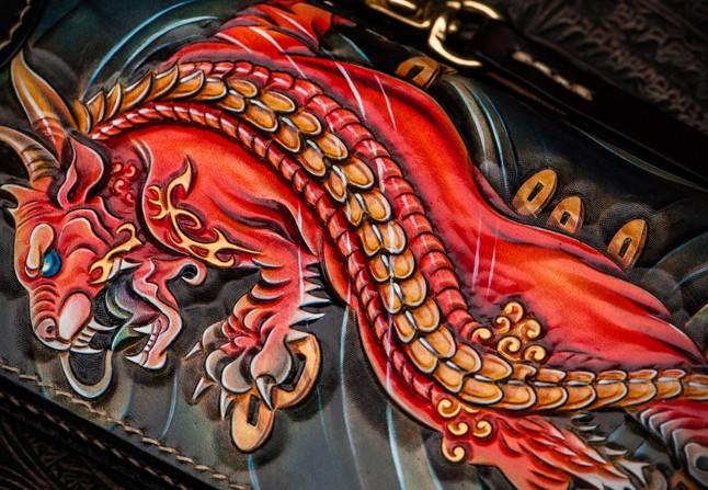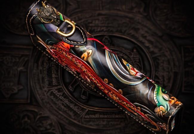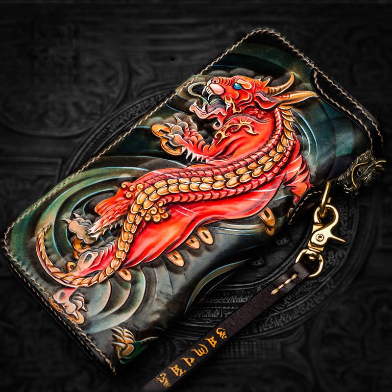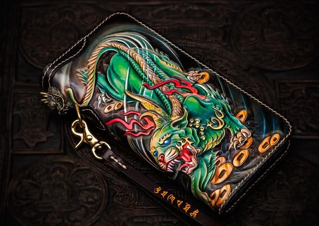 Design: Handmade Leather Chinese Monster Mens Chain Biker Wallet Cool Leather Wallet With Chain Wallets for Men
