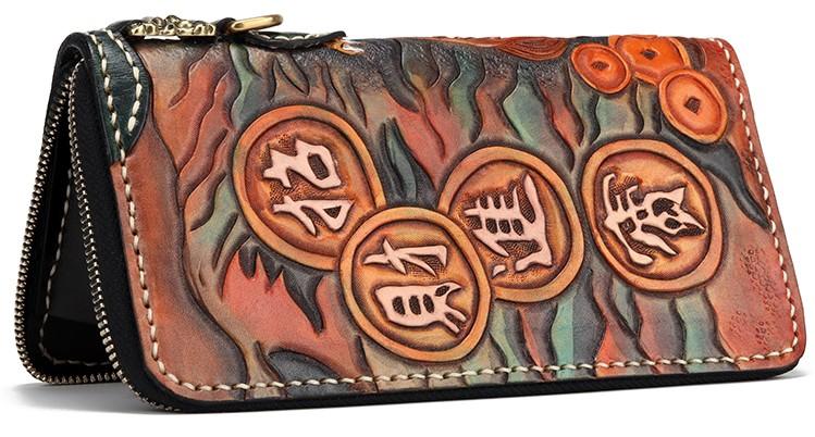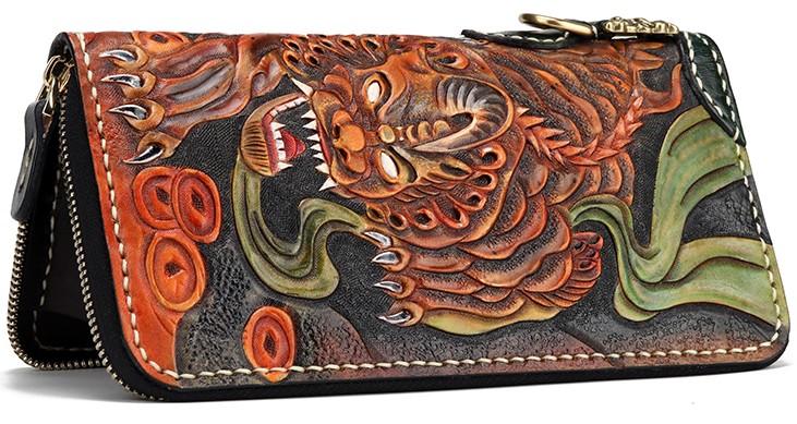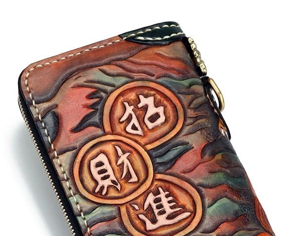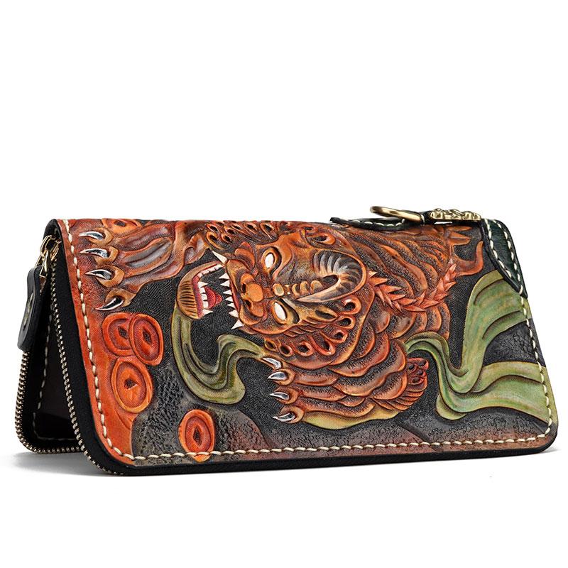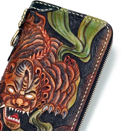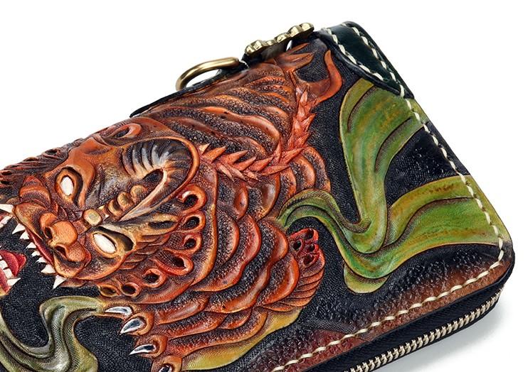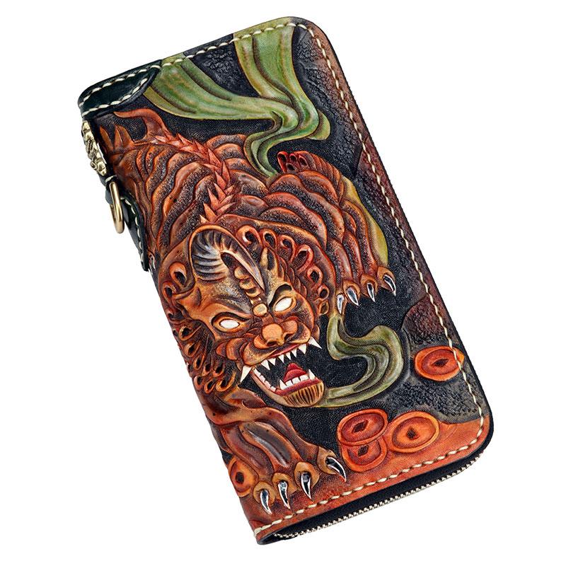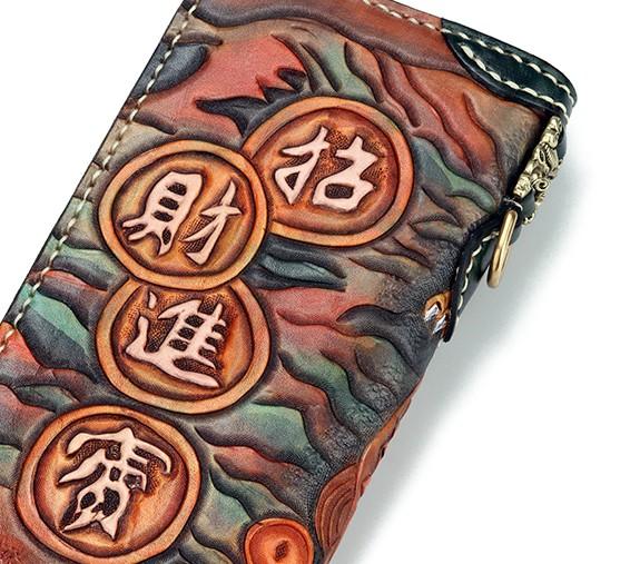 Design: Handmade Leather Fortune Pixiu Mens Chain Biker Wallet Cool Leather Wallet With Chain Wallets for Men