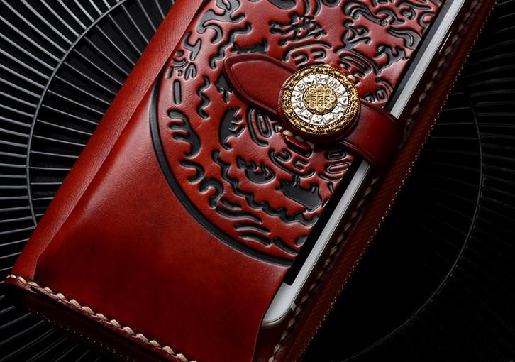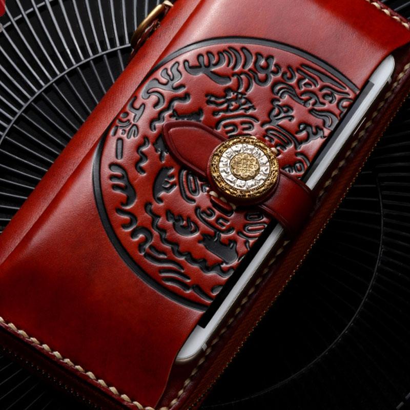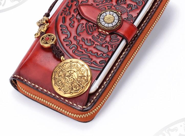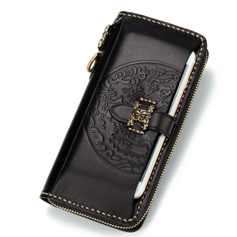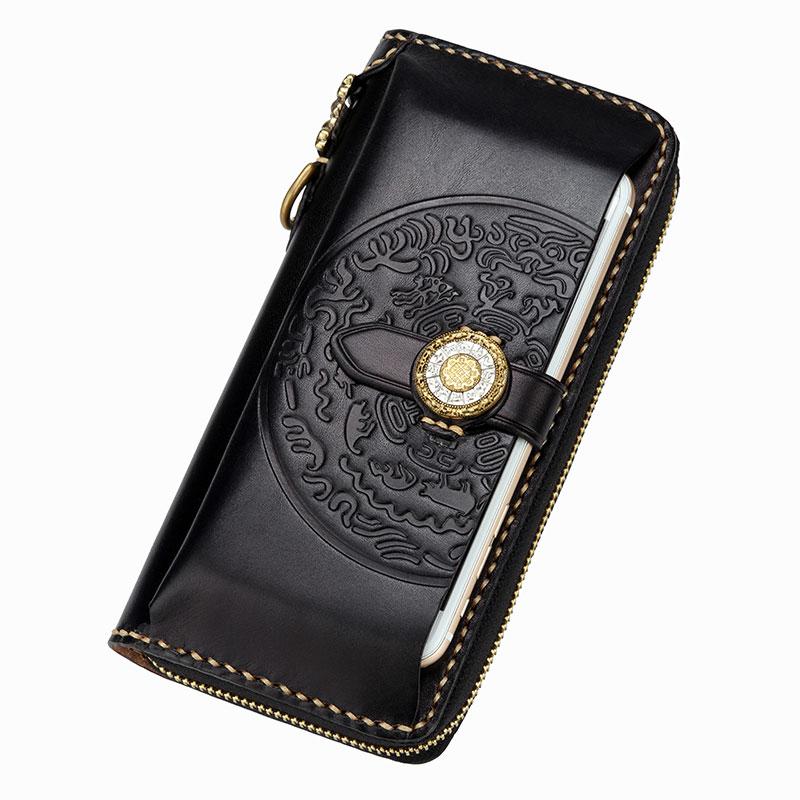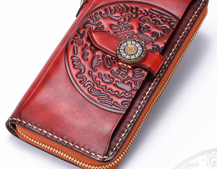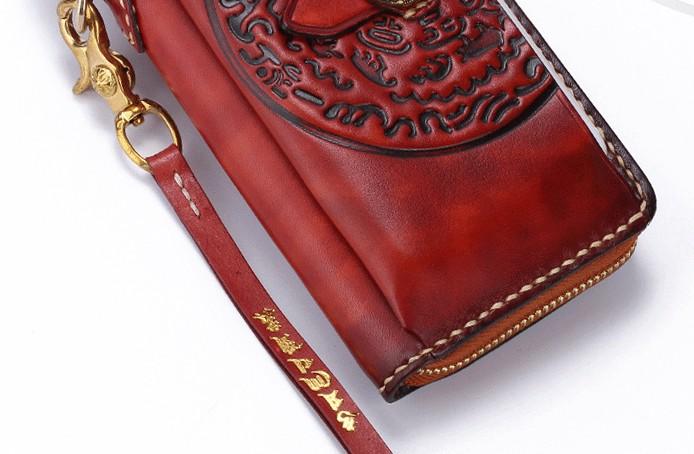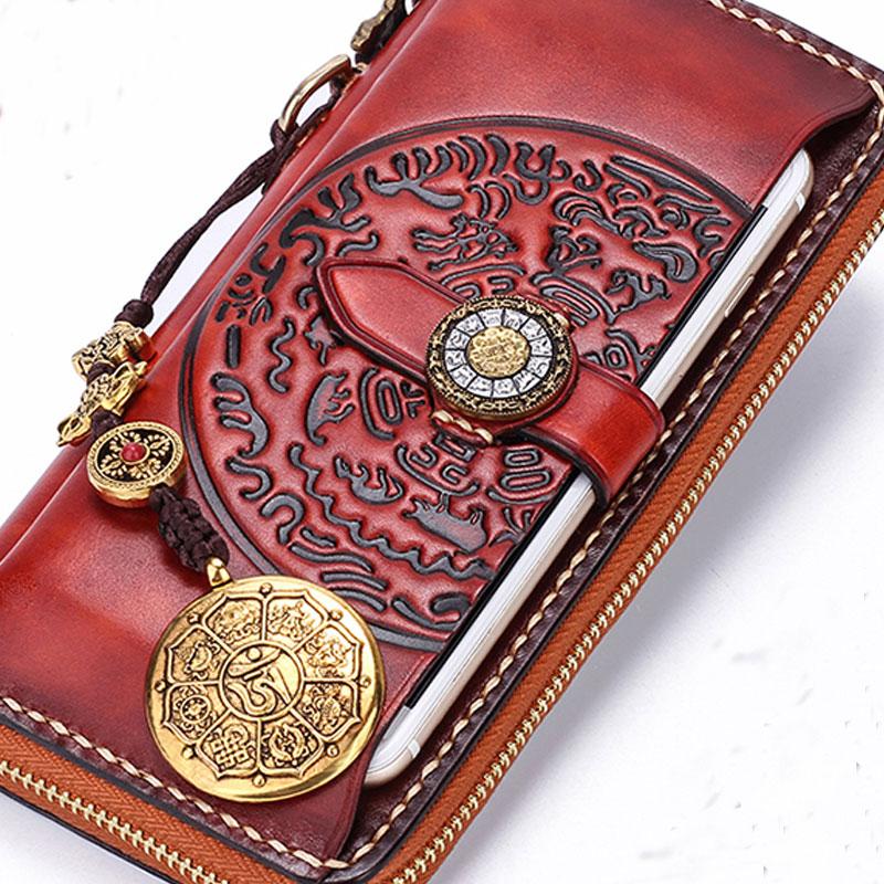 Handmade Leather Mens Chain Biker Wallet Cool Leather Wallet Long Phone Wallets for Men
