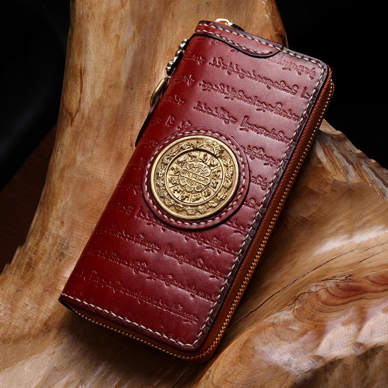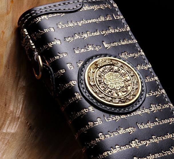 Design: Handmade Leather Mens Chain Tibetan Biker Wallet Cool Leather Wallet Long Phone Wallets for Men