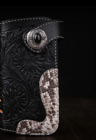 Design: Handmade Leather Mens Cool Black Obsidian Chain Wallet Biker Trucker Wallet with Chain