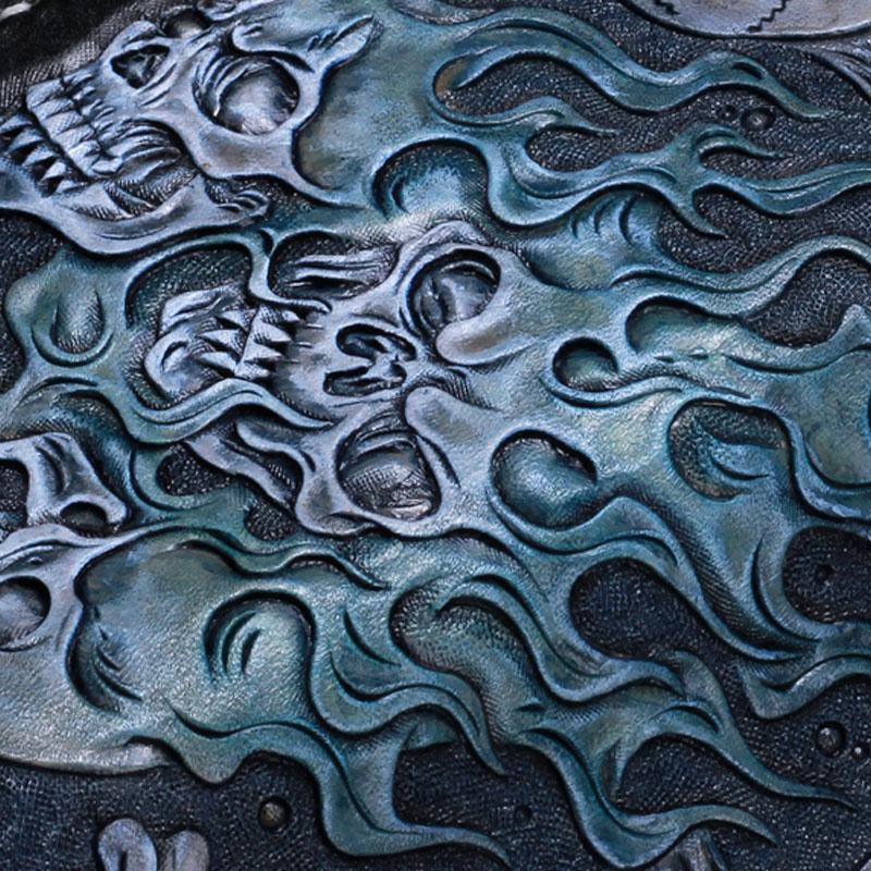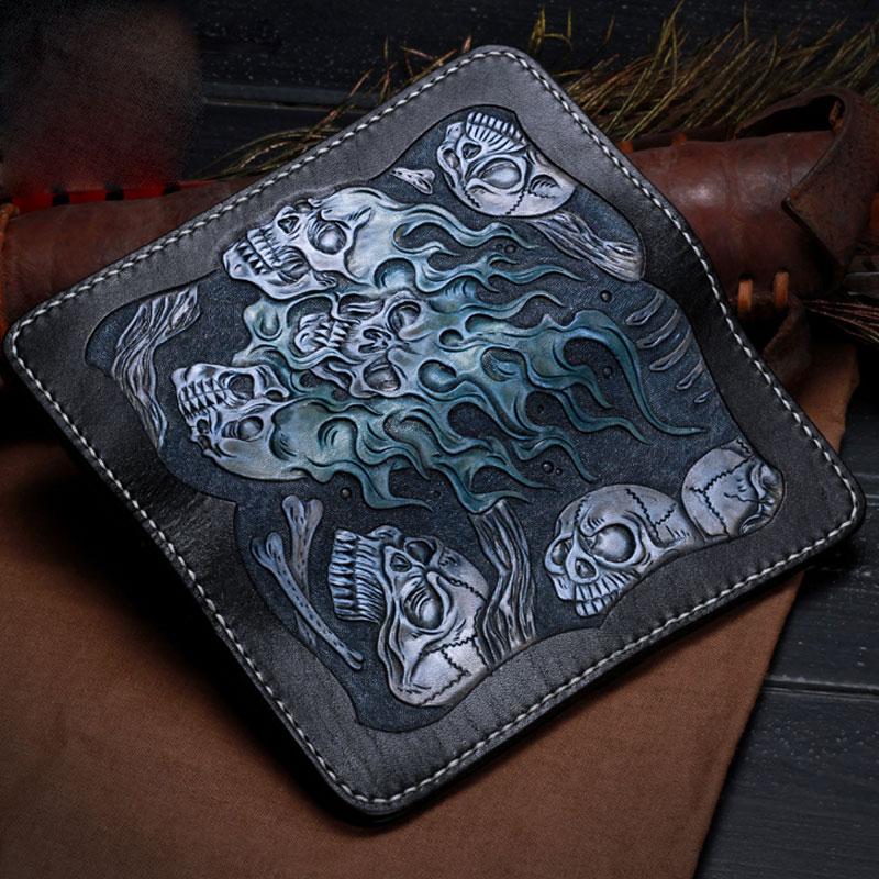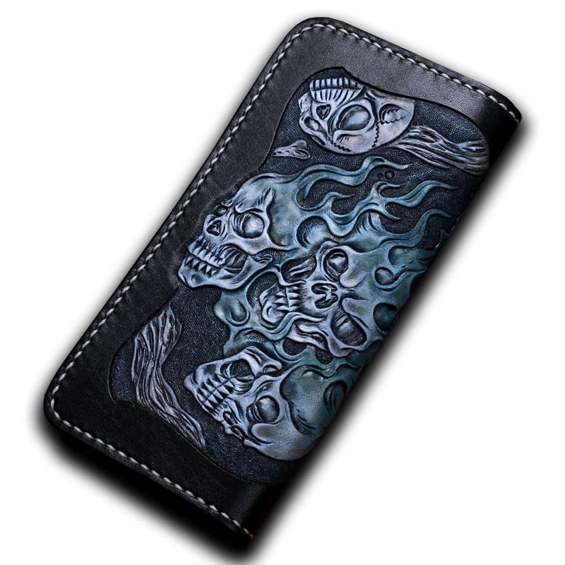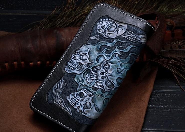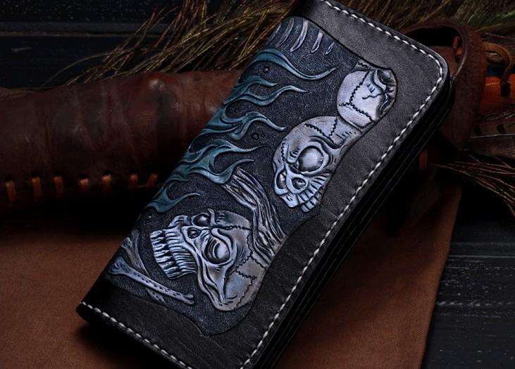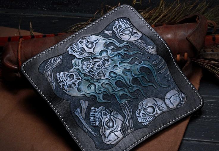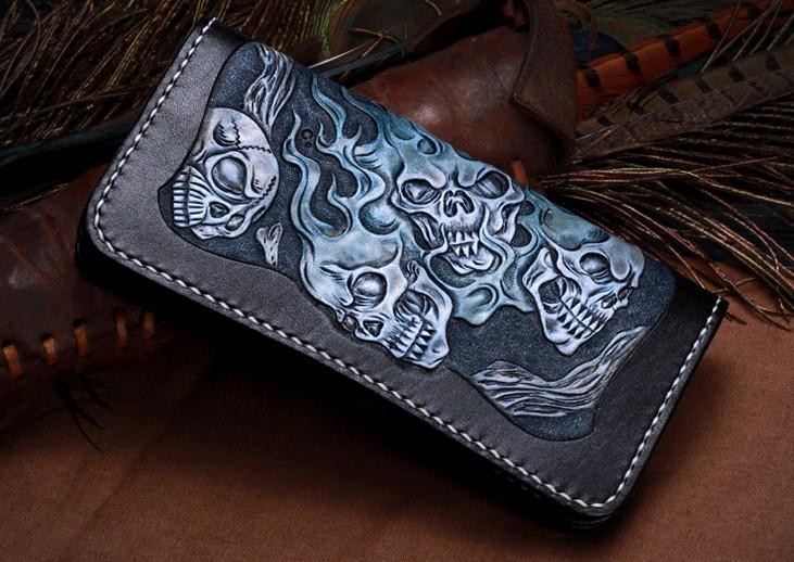 Design: Handmade Leather Skull Tooled Mens Chain Biker Wallet Cool Leather Wallet With Chain Wallets for Men