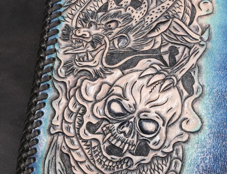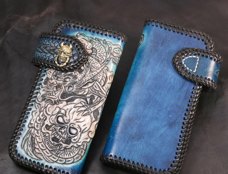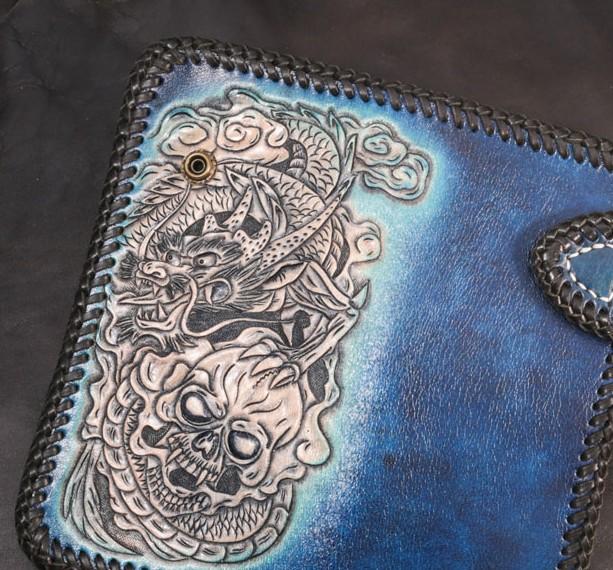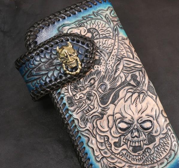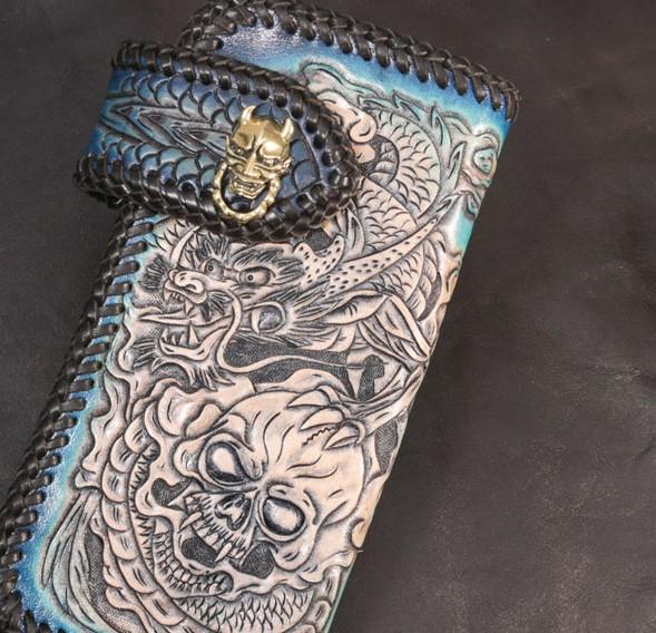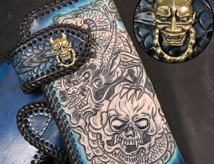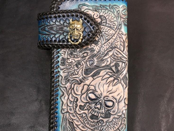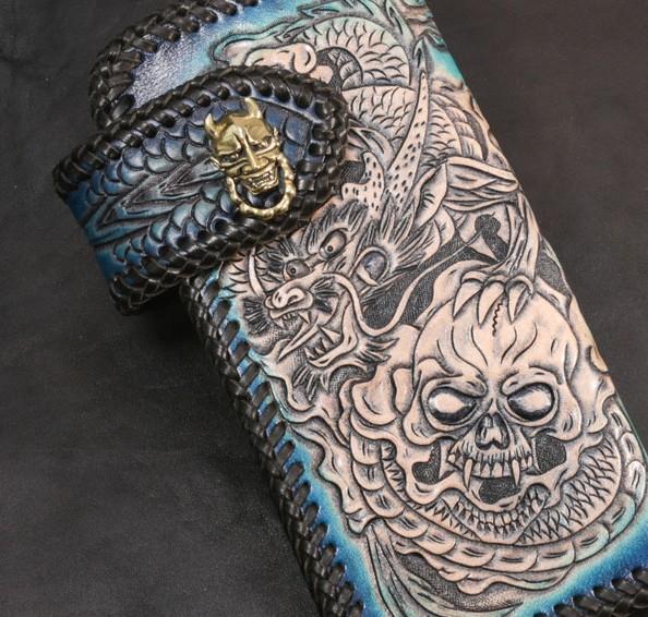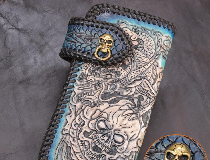 Design: Leather Skull Mens Chain Biker Wallet Cool Handmade BIker Wallet Long Wallet for Men