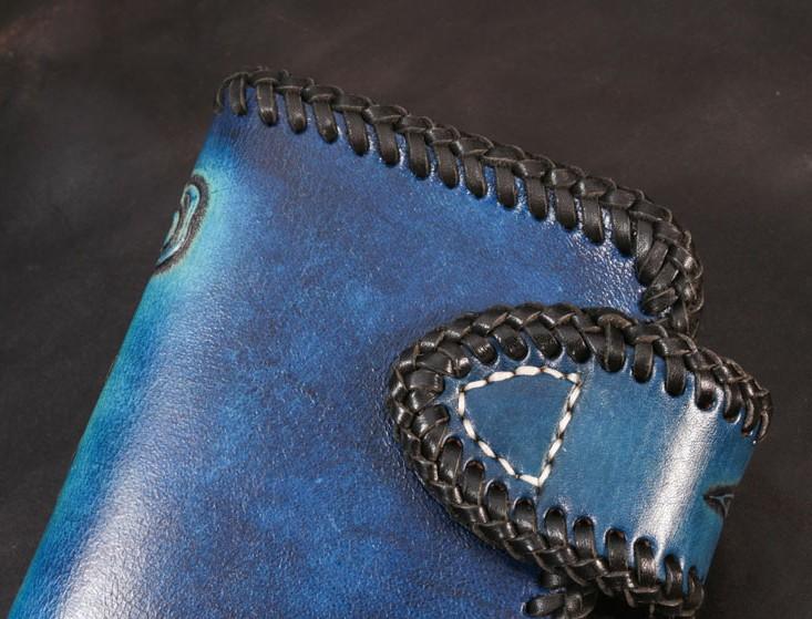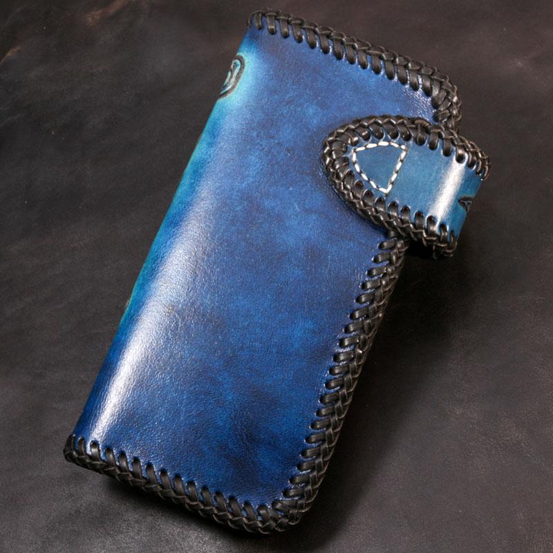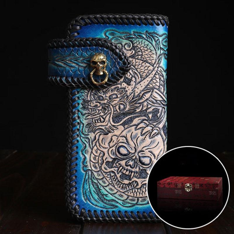 Handmade Leather Skull Punk Mens Chain Biker Wallet Cool Leather Wallet Long Wallets for Men