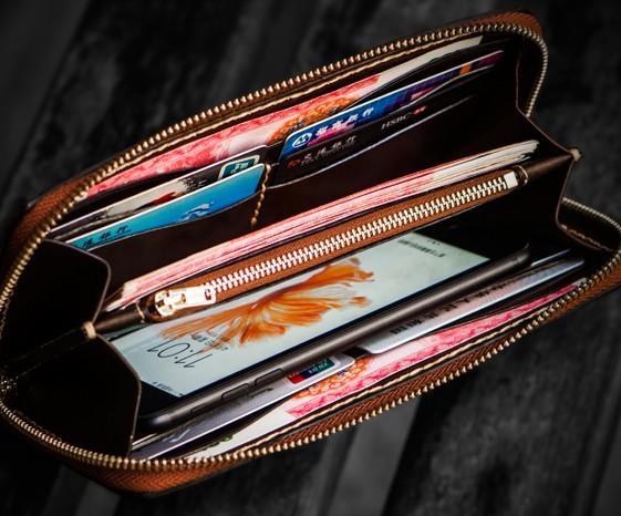 Slots: 2 full size bill slot, 8 card holders, 1 zipper slot, 2 phone slot