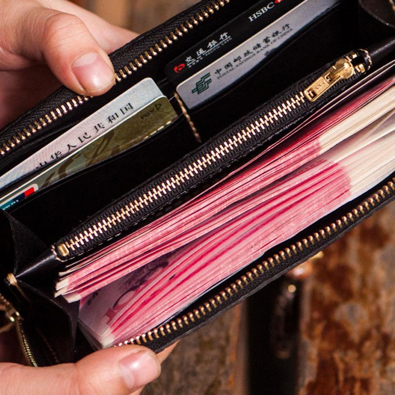 Slots: 2 full size bill slot, 8 card holders, 1 zipper slot