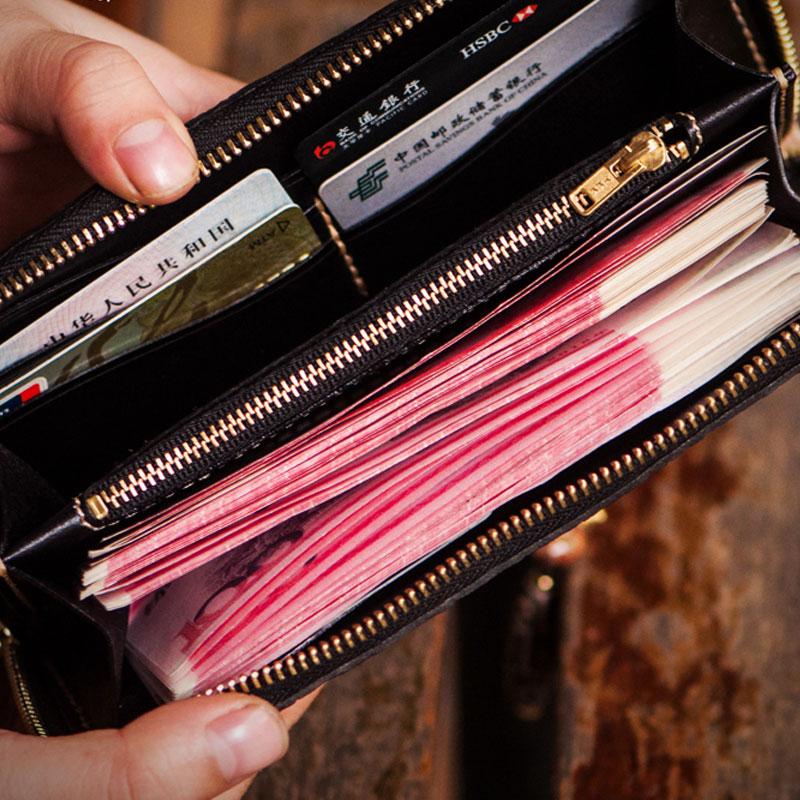 Slots: 2 full size bill slot, 8 card holders, 1 zipper slot