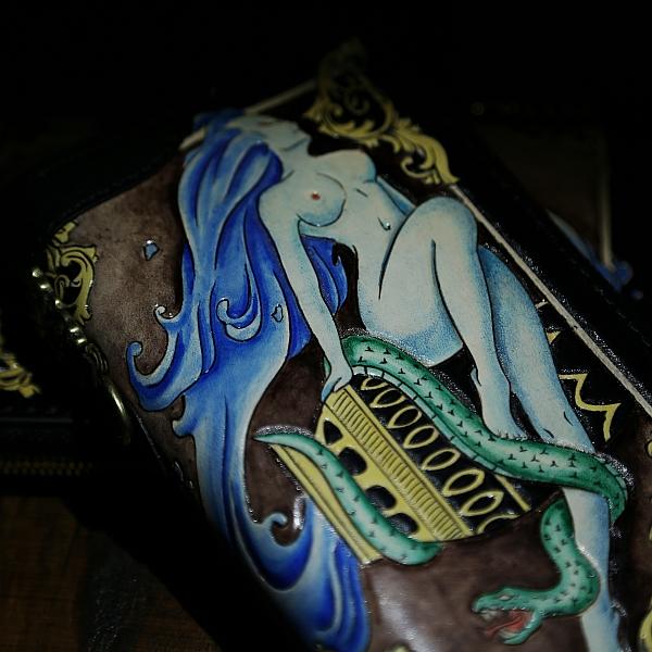 Design: Handmade Leather Tooled Constellation Aquarius Biker Wallet Mens Cool Chain Wallet Trucker Wallet with Chain