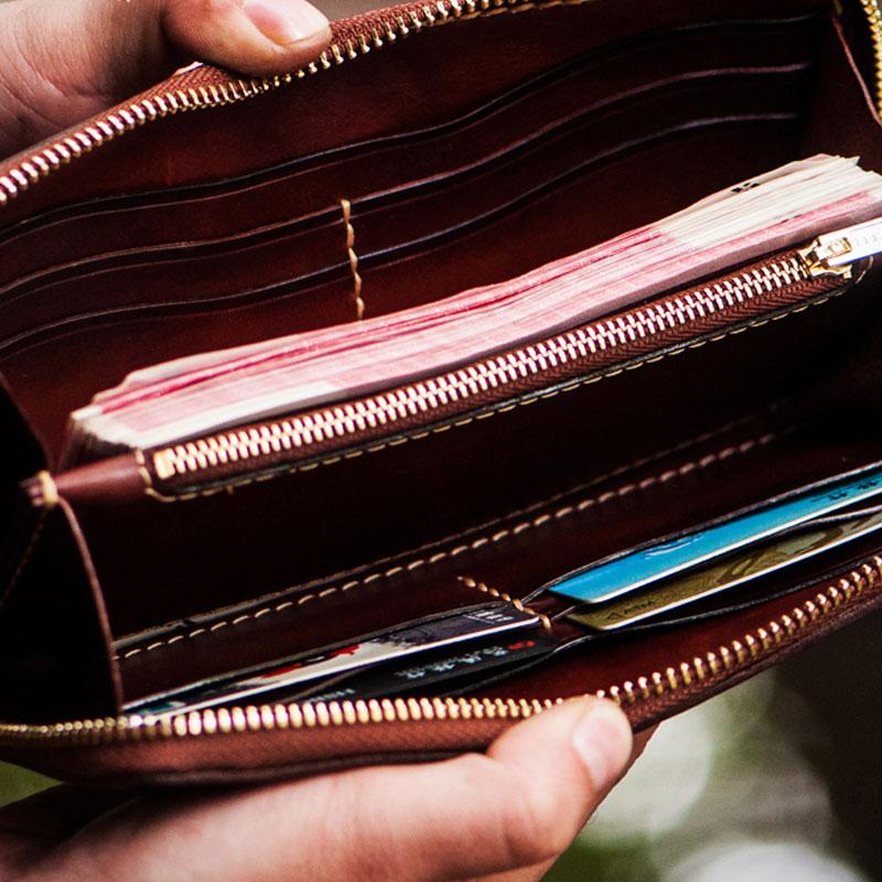 Slots: 2 full size bill slot, 8 card holders, 1 zipper slot