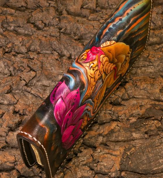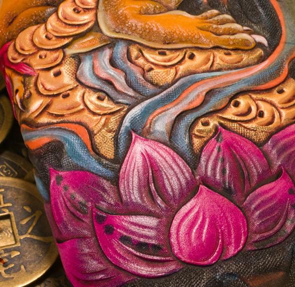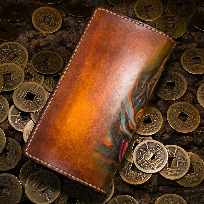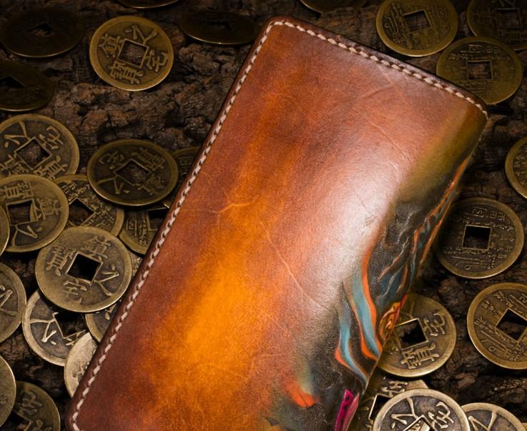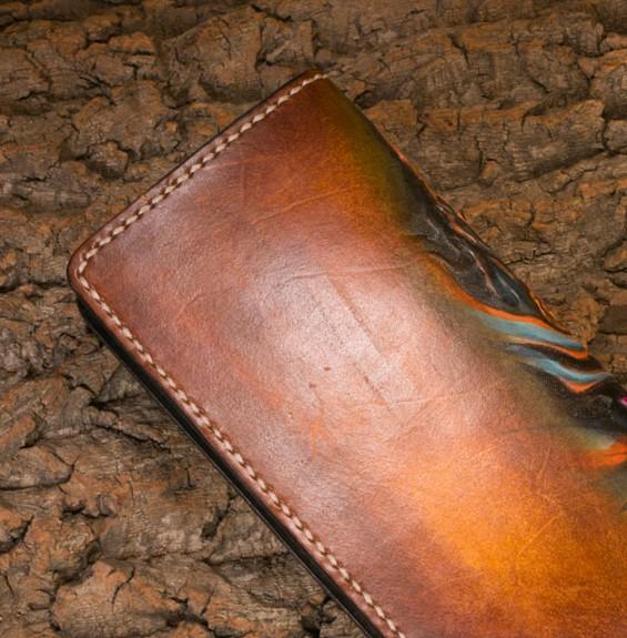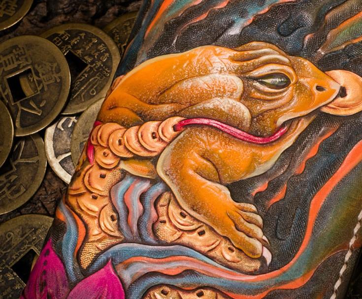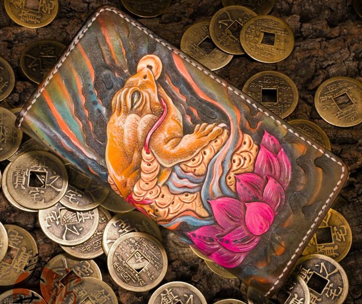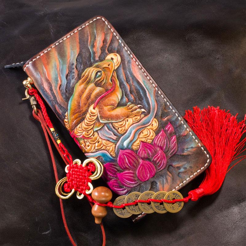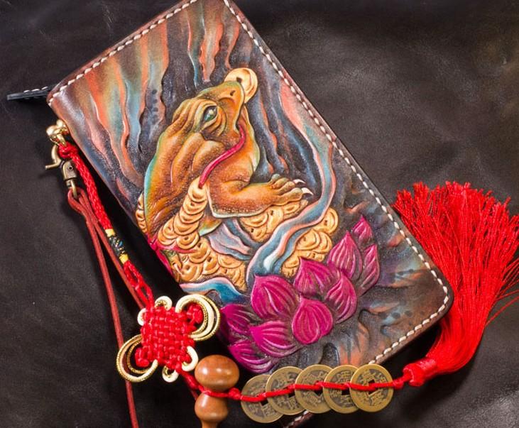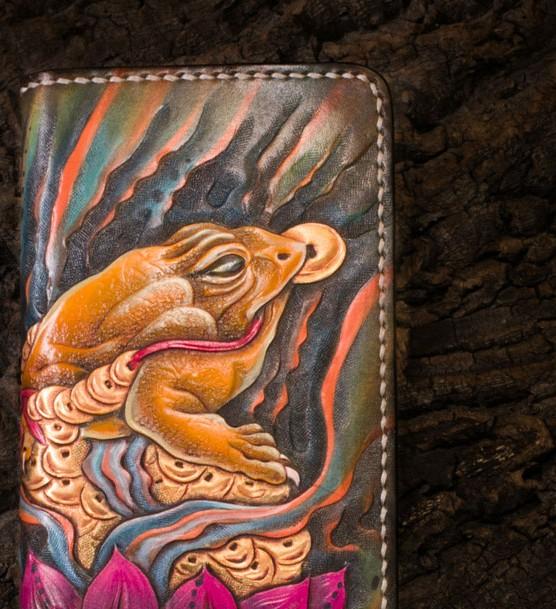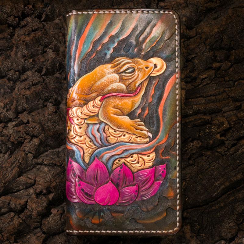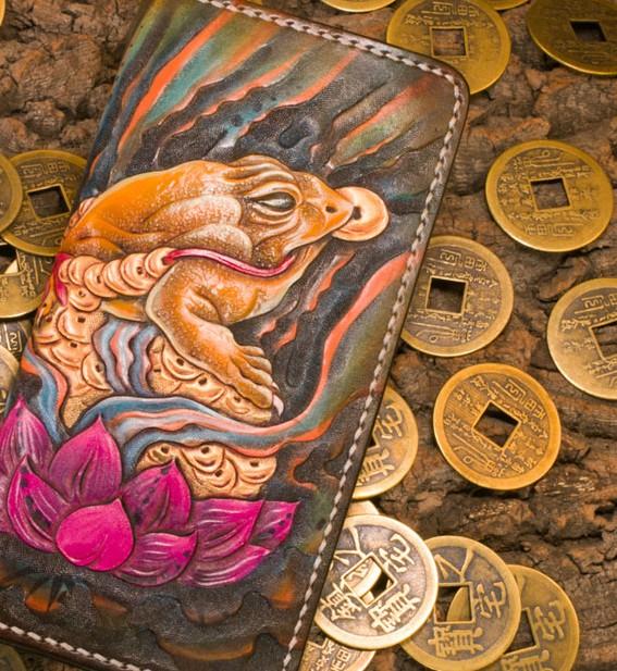 Design: Handmade Leather Tooled Golden Toad Mens Chain Biker Wallet Cool Leather Wallet Long Phone Wallets for Men