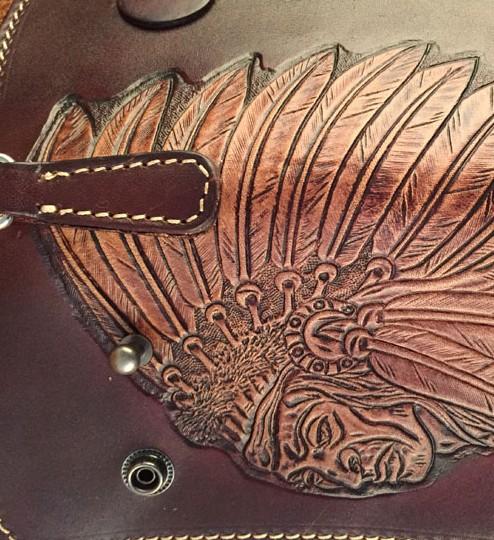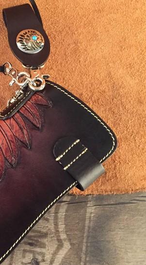 Design: Handmade Leather Tooled Indian Chief Mens Chain Biker Wallet Cool Leather Wallet Long Wallet for Men