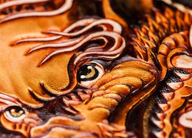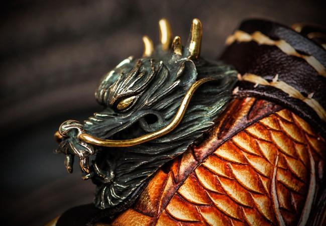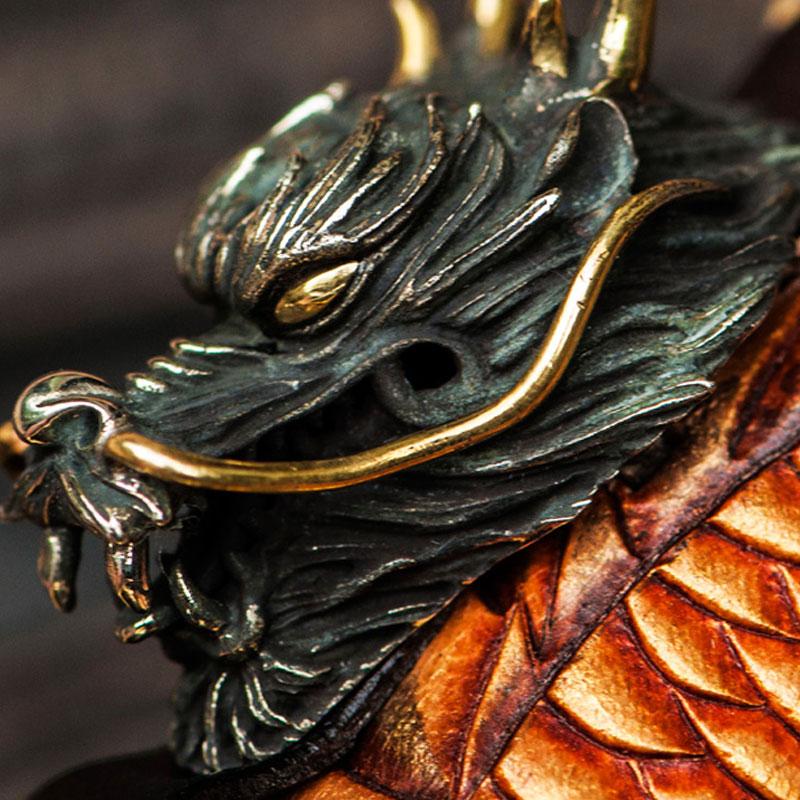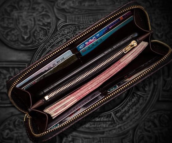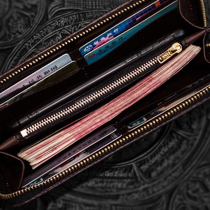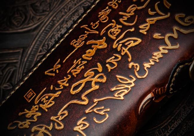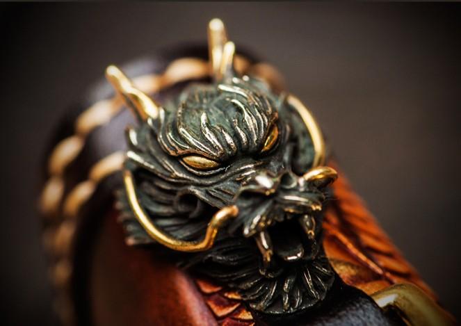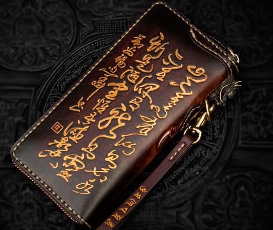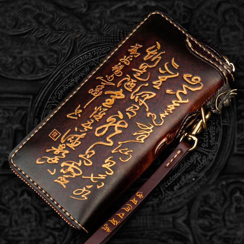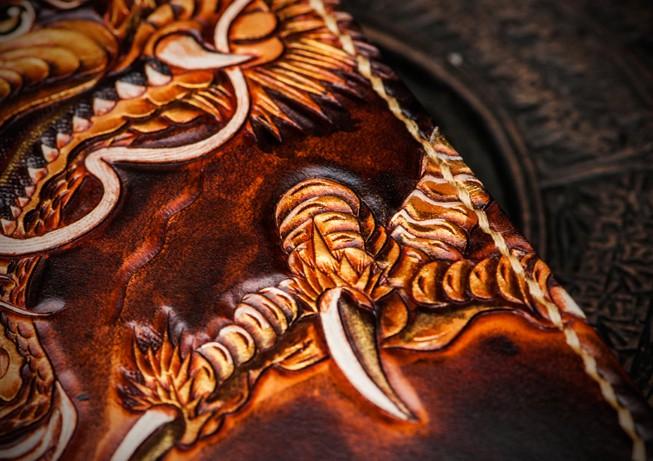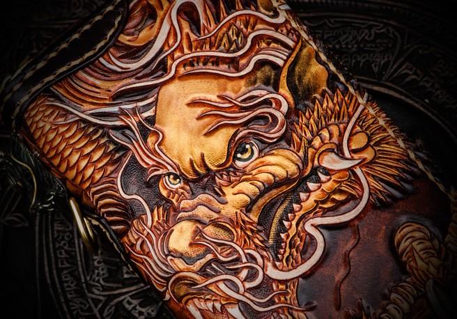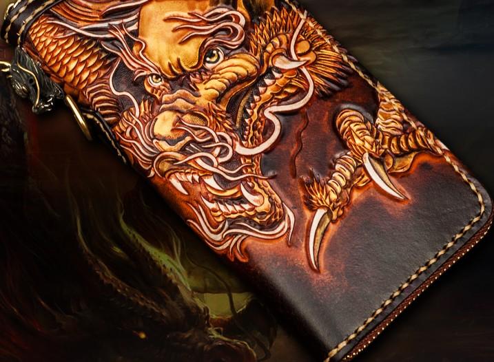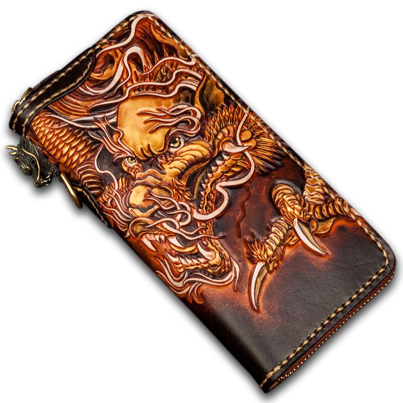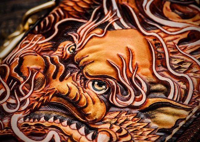 Design: Handmade Leather Tooled Long Chinese Dragon Mens Chain Biker Wallet Cool Leather Wallet With Chain Wallets for Men