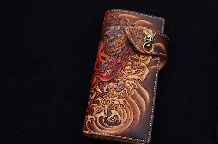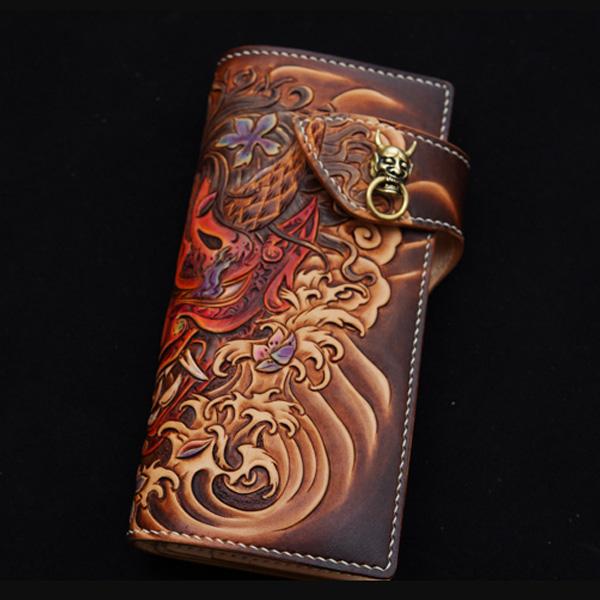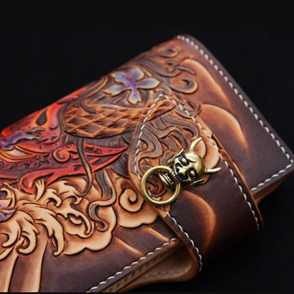 Design: Handmade Leather Tooled PRAJNA Mens Chain Biker Wallet Cool Leather Wallet With Chain Wallets for Men