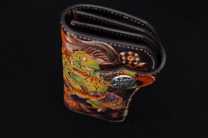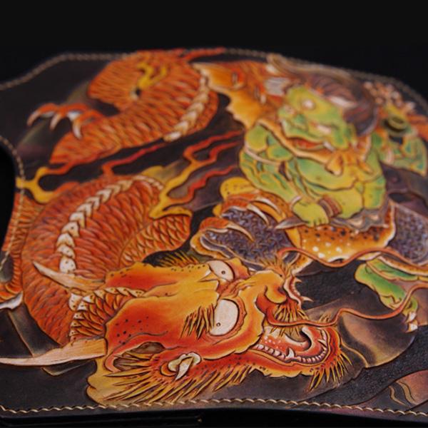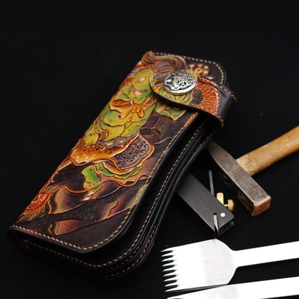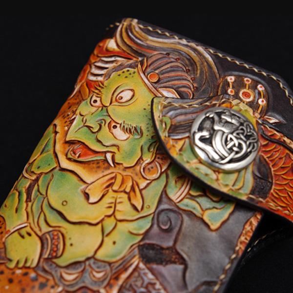 Style: Handmade Leather Tooled Thunder God Mens Chain Biker Wallet Cool Leather Wallet With Chain Wallets for Men