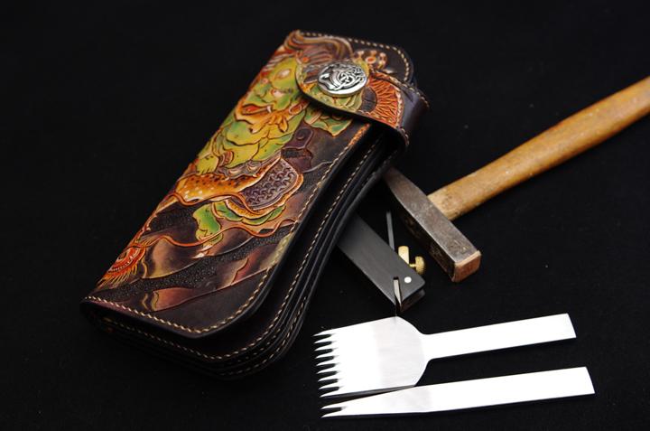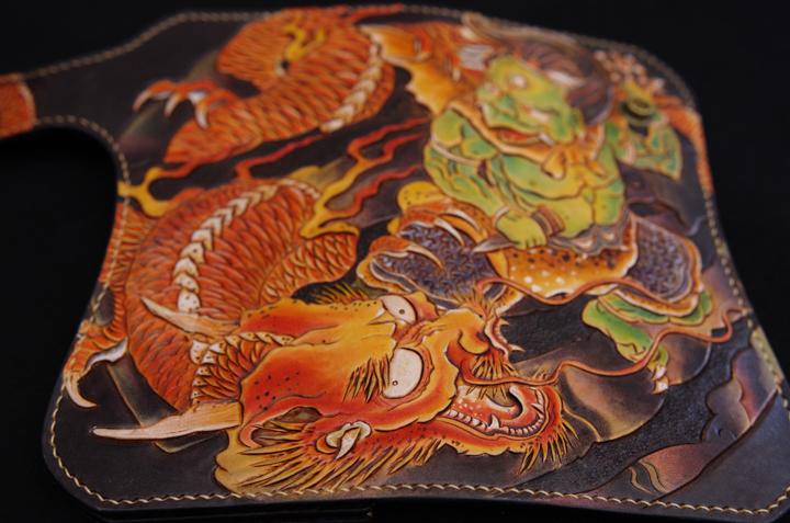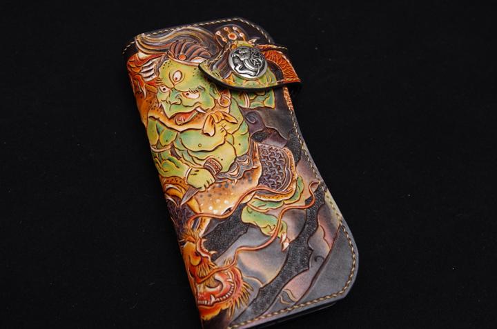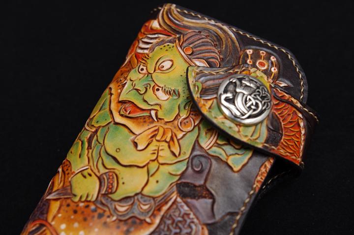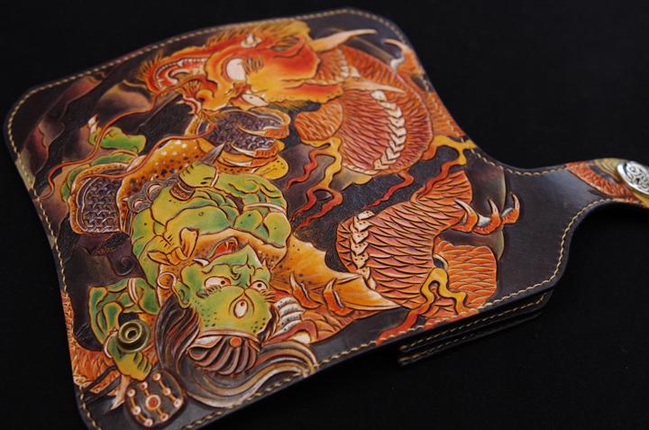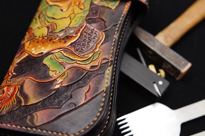 Design: Handmade Leather Tooled Thunder God Mens Chain Biker Wallet Cool Leather Wallet With Chain Wallets for Men