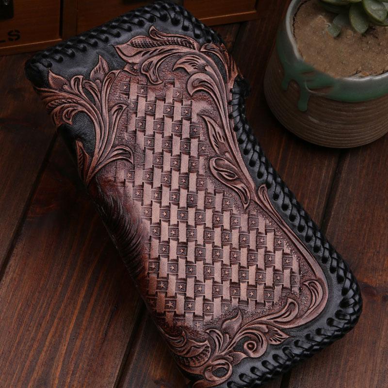 Style: Handmade Leather Wolf Mens Chain Biker Wallet Cool Leather Wallet Long Phone Wallets for Men