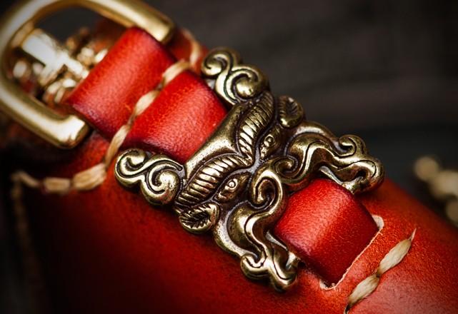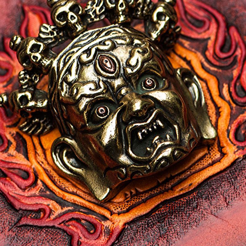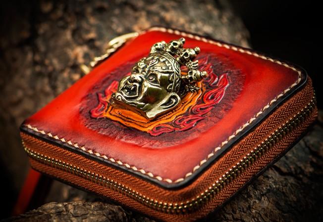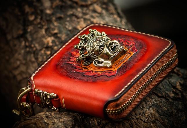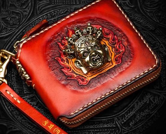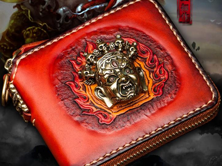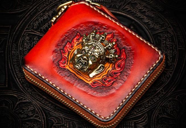 Design: Handmade Mahākāla Leather Black Biker Wallet Mens Cool Short Chain Wallet Trucker Wallet with Chain