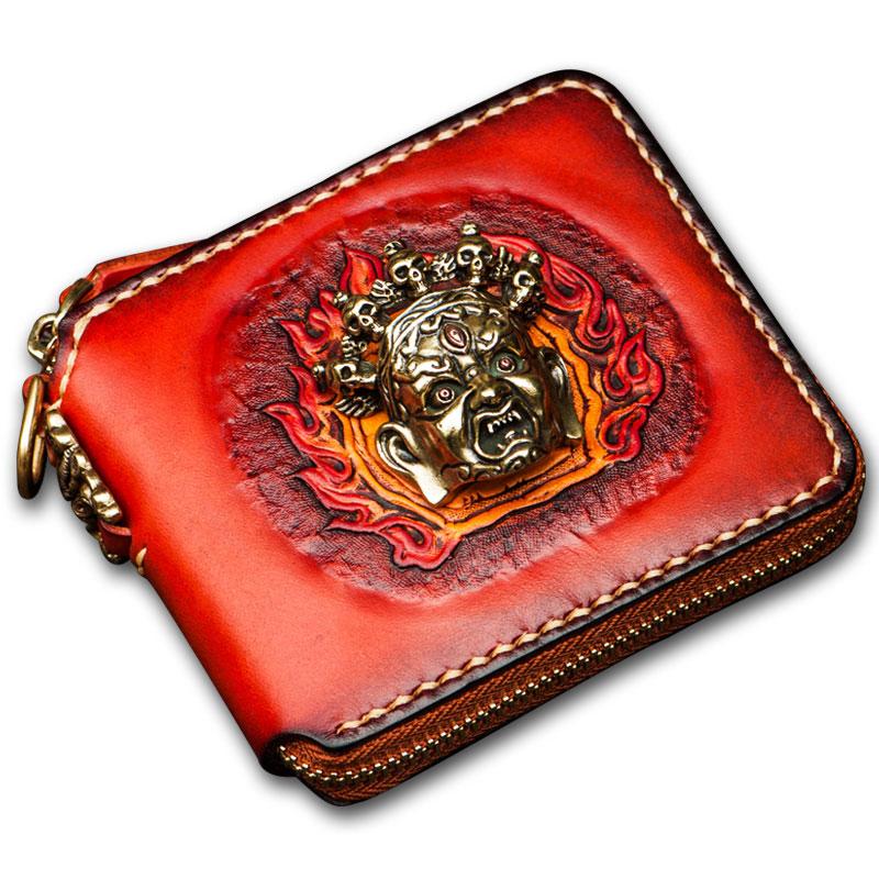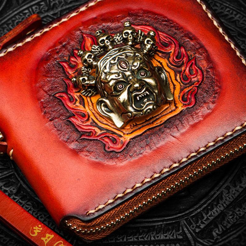 Style: Handmade Mahākāla Leather Black Biker Wallet Mens Cool Short Chain Wallet Trucker Wallet with Chain