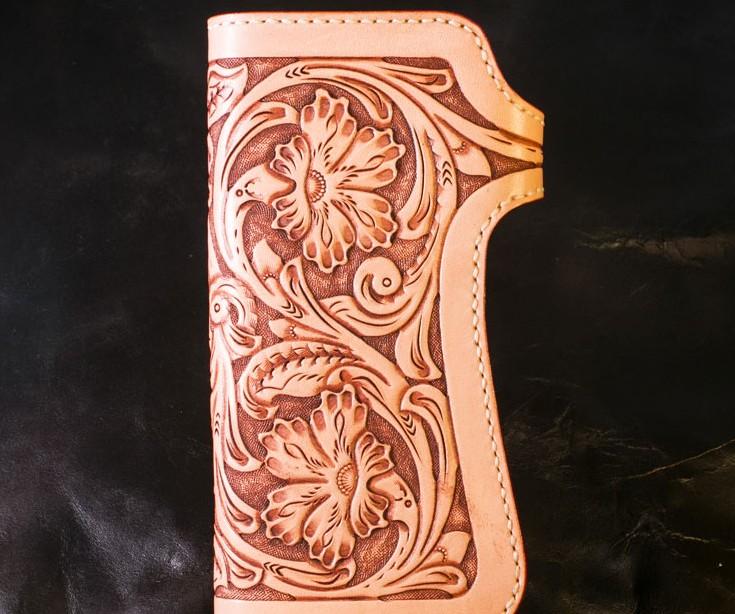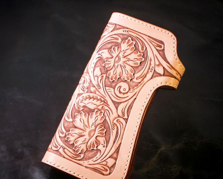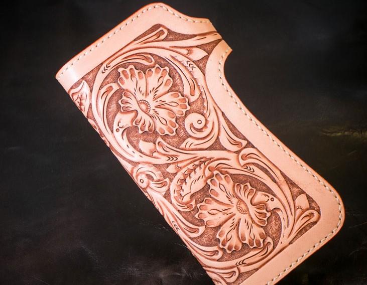 Design: Handmade Mens Cool Tooled Boa Skin Floral Leather Chain Wallet Biker Trucker Wallet with Chain