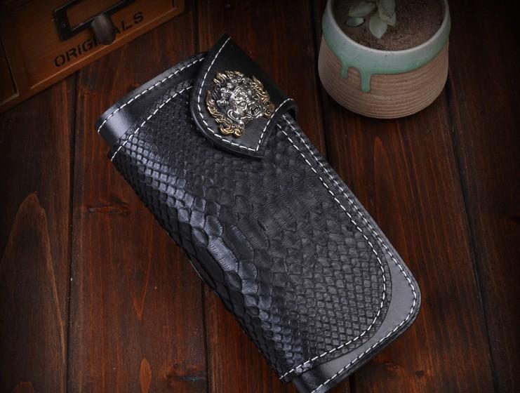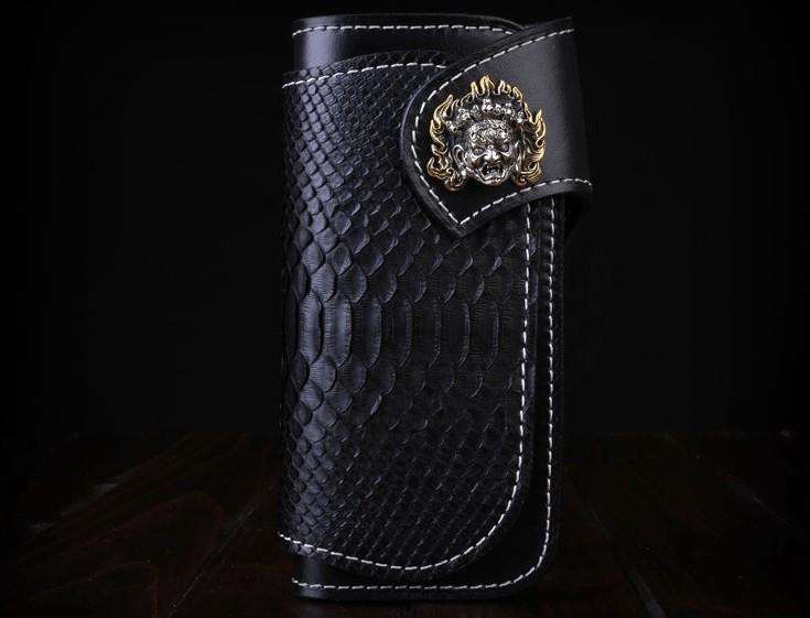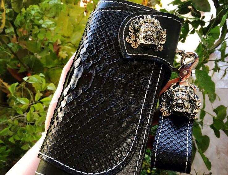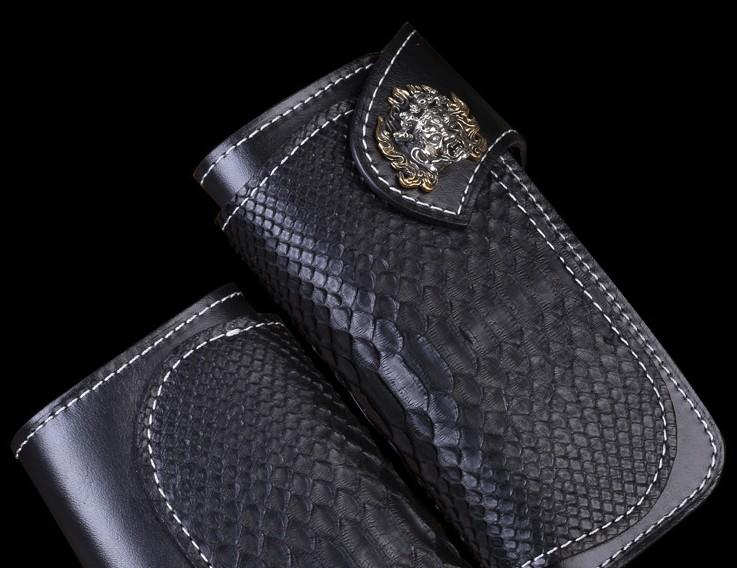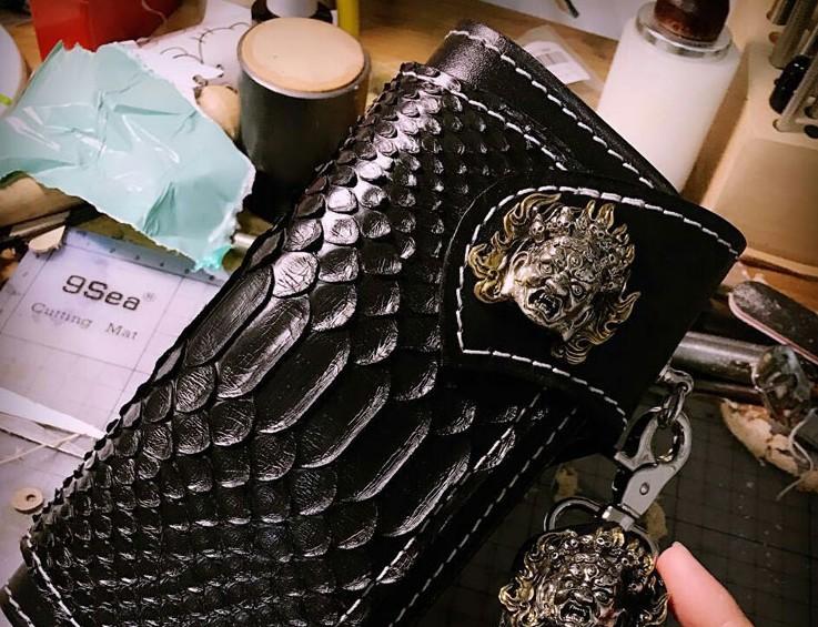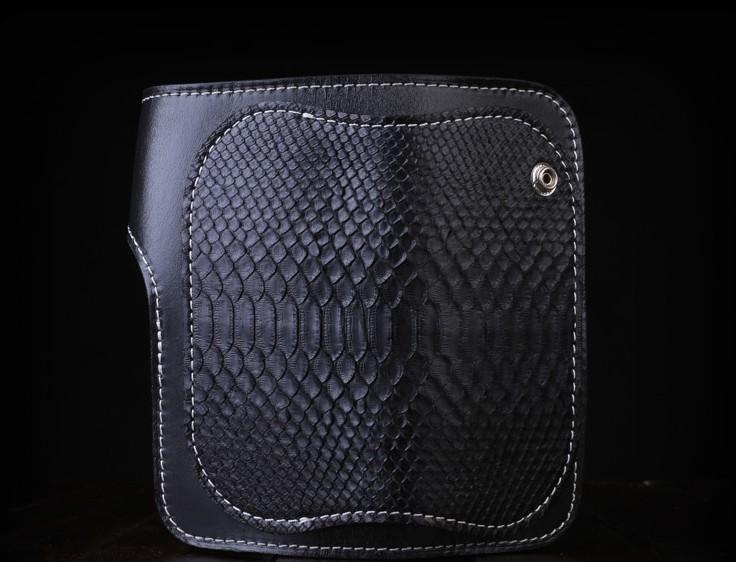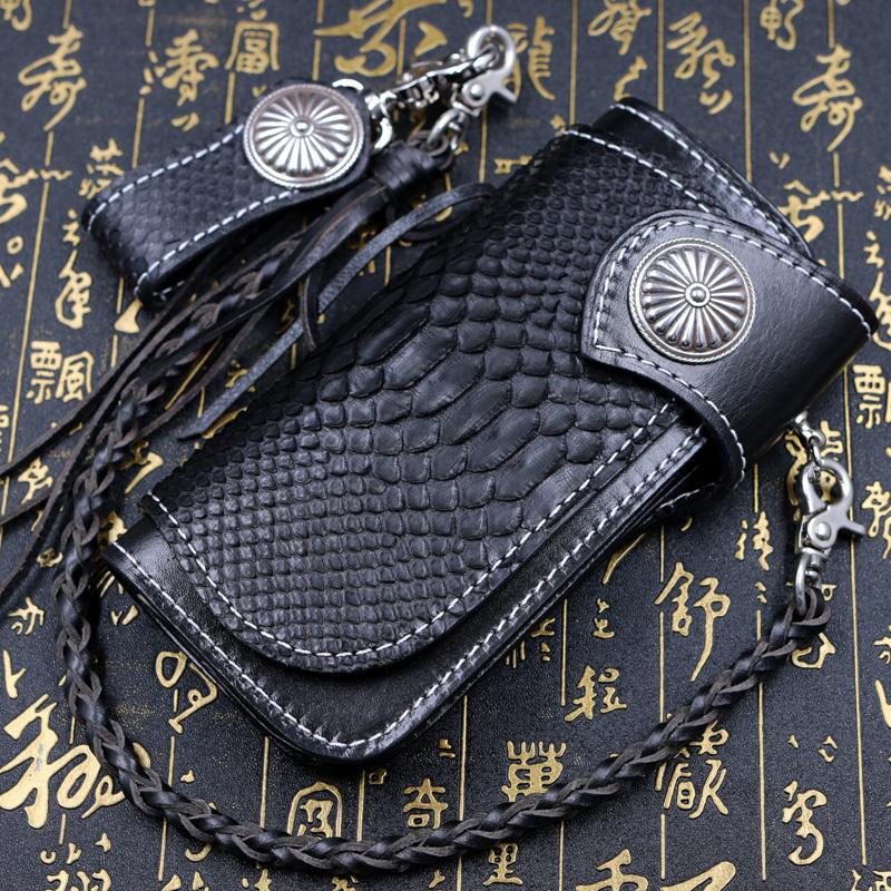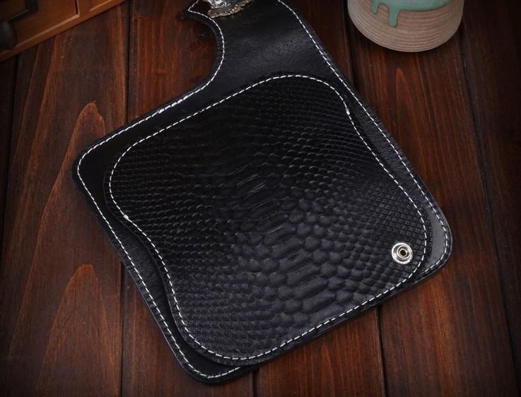 Style: Handmade Mens Cool Tooled Boa Skin Leather Chain Wallet Biker Trucker Wallet with Chain
