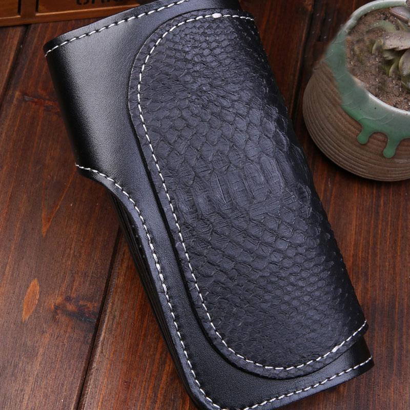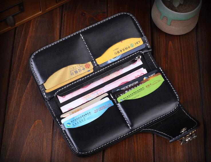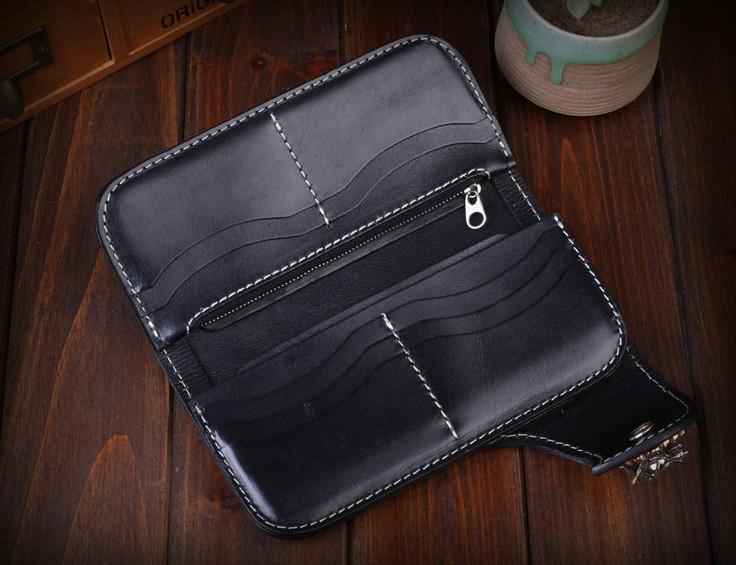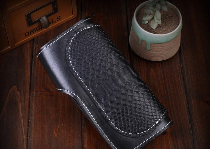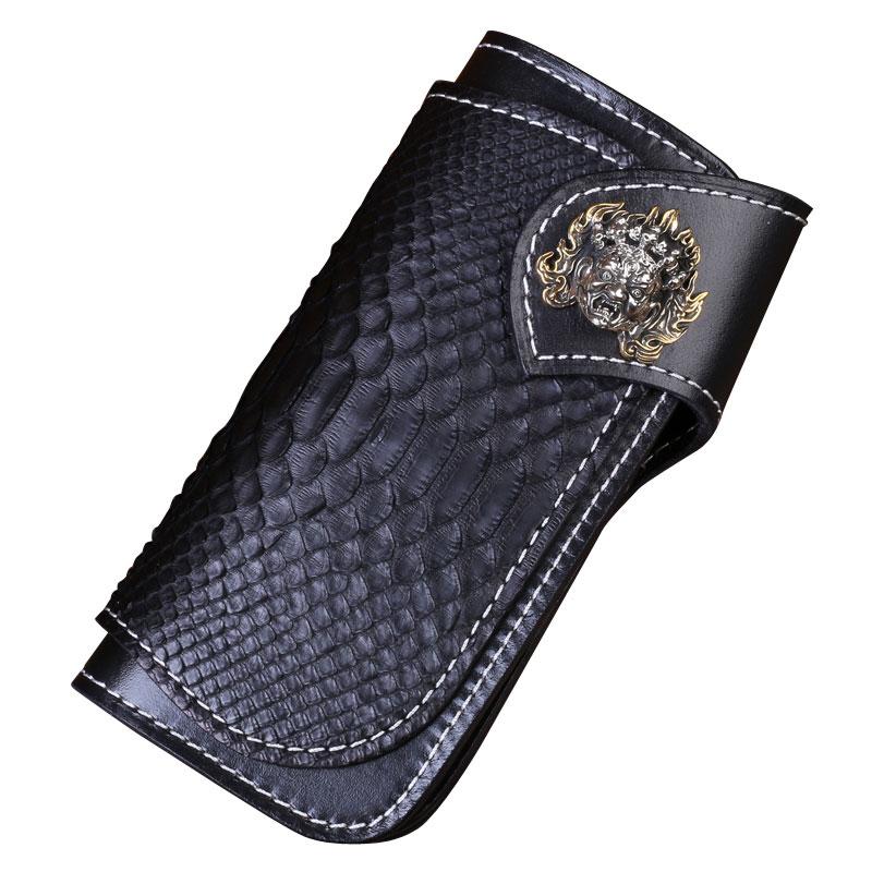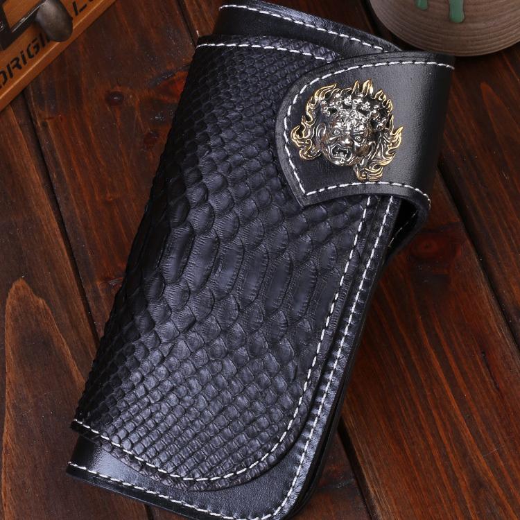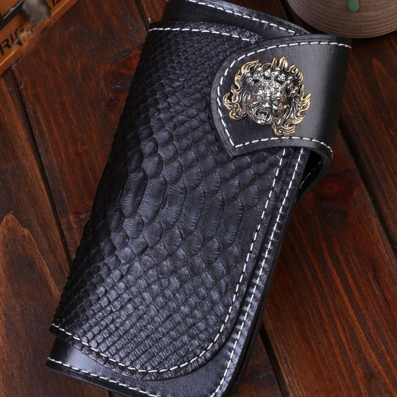 Style: Handmade Mens Cool Tooled Boa Skin Leather Chain Wallet Biker Trucker Wallet with Chain