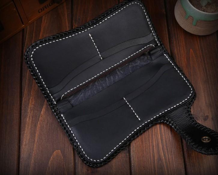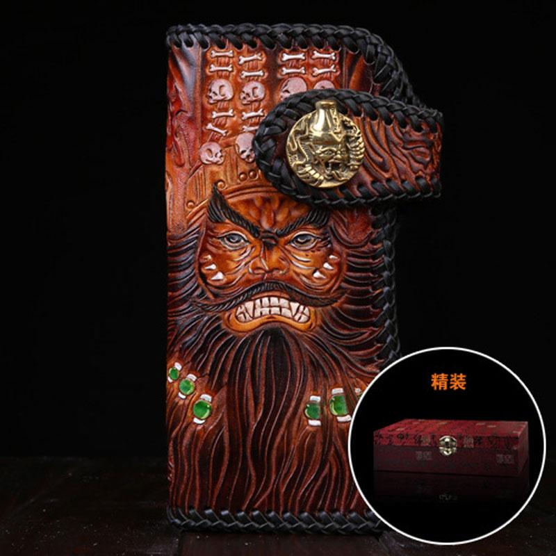 Style: Handmade Mens Cool Tooled Zhong Kui demon Leather Chain Wallet Biker Trucker Wallet with Chain