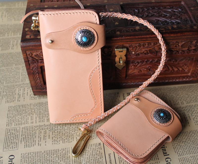 Style: Handmade Leather Mens Biker Chain Wallet Cool Long Biker Wallet with Chain