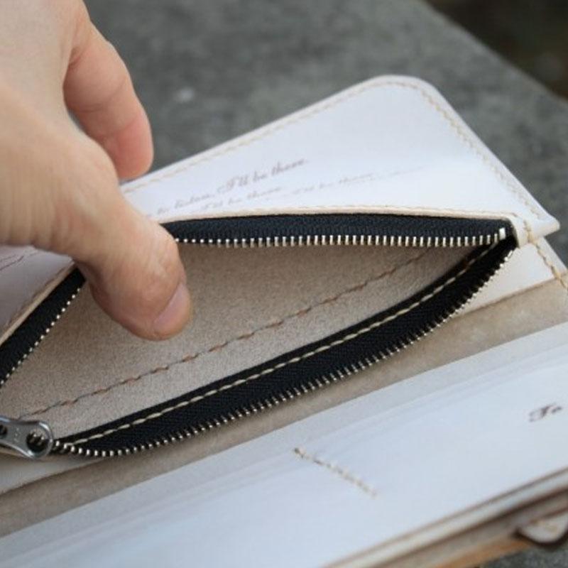 Slots: 2 full size bill slots, 6 card holders, 1 zipper slot
