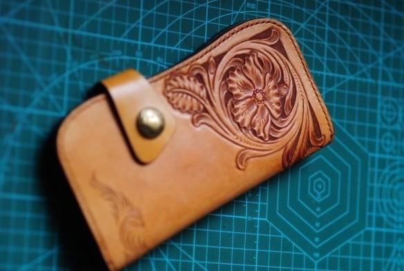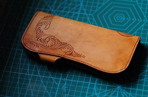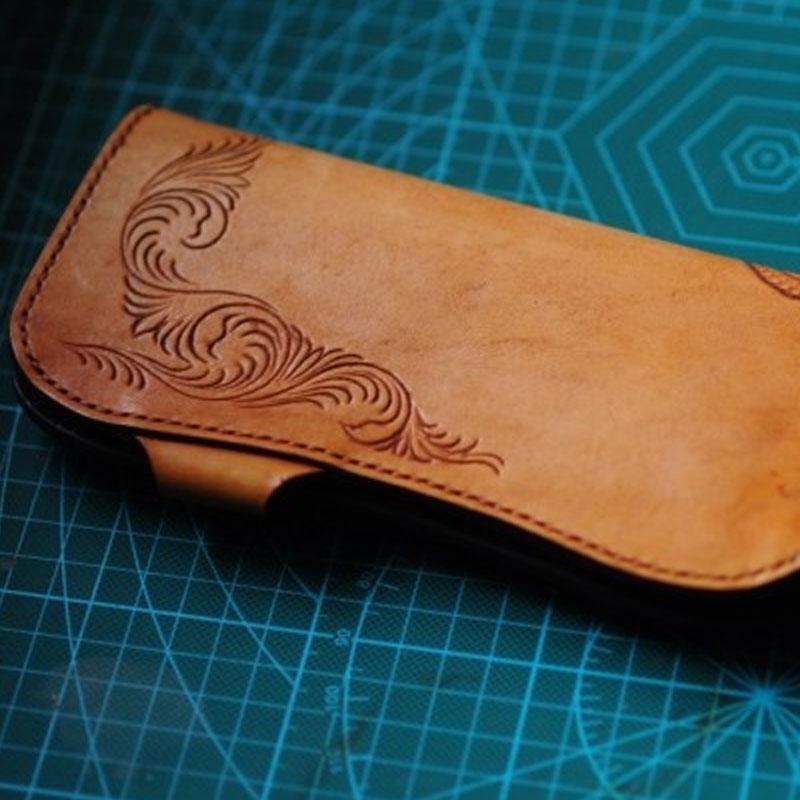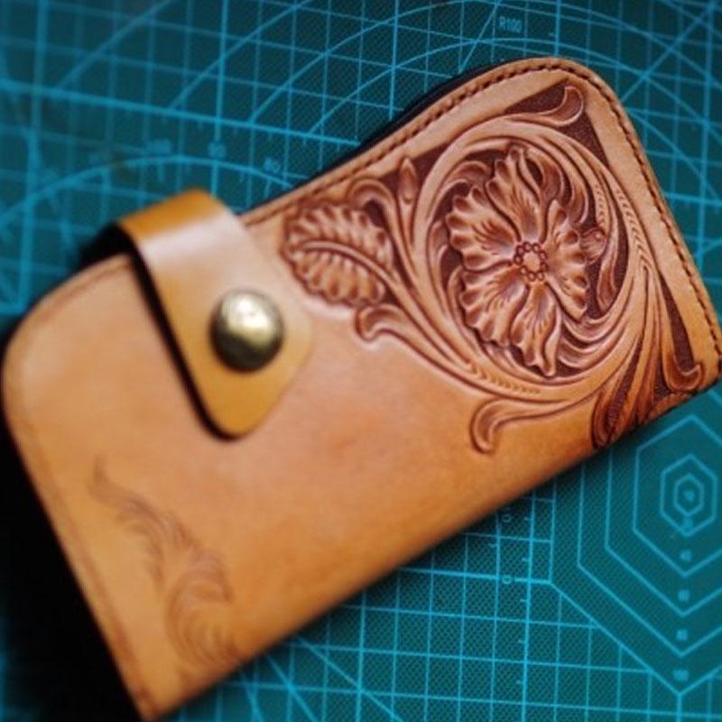 Design: Handmade Tooled Floral Mens Leather Long Biker Wallet Cool Long Chain Wallet for Men