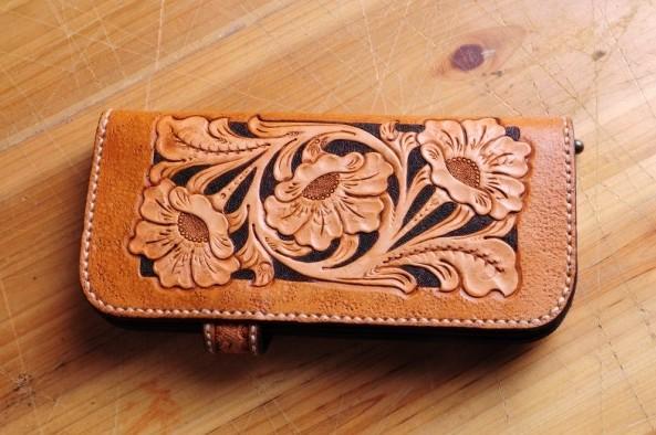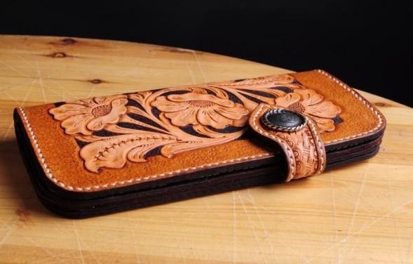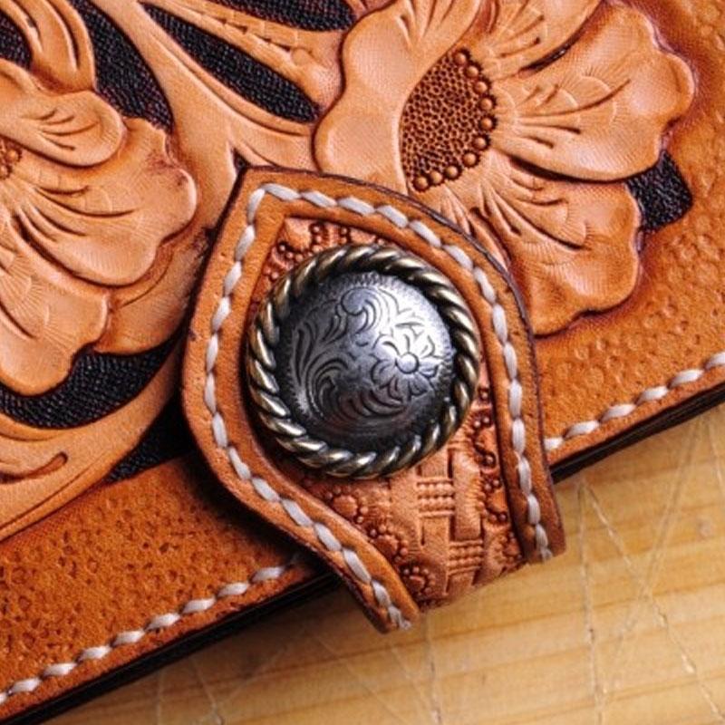 Design: Handmade Tooled Floral Mens Leather Long Biker Wallet Cool Long Chain Wallet for Men