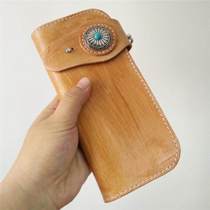 Style: Handmade Leather Mens Biker Chain Wallet Cool Long Biker Wallet with Chain