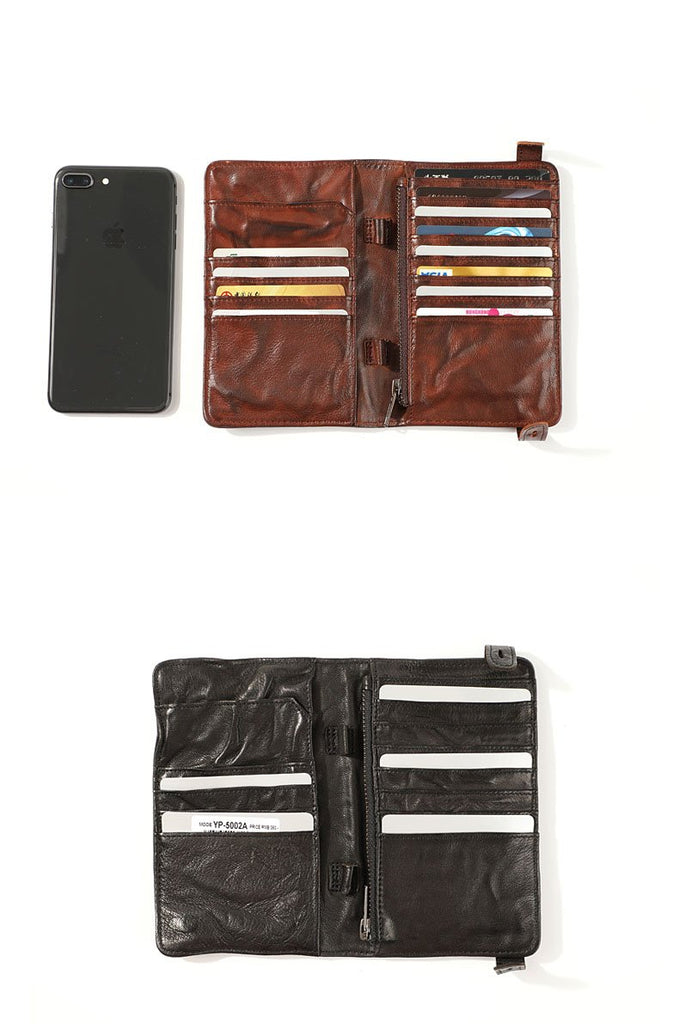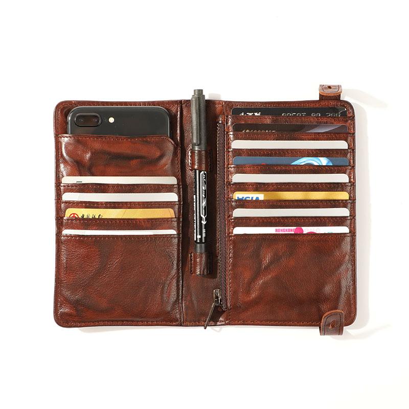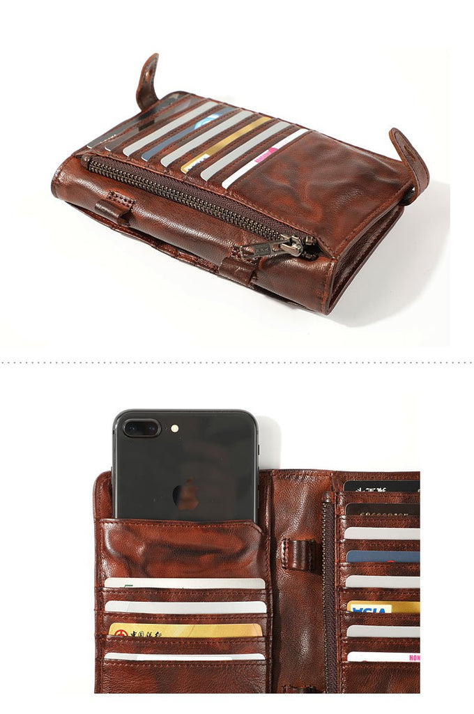 Style: Retro Black Sheepskin Leather Men's Long Wallet Clutch Wallet Brown Phone Wallet Zipper Clutch Wallet For Men