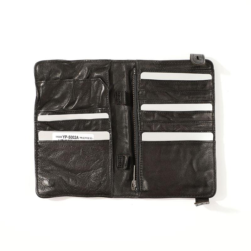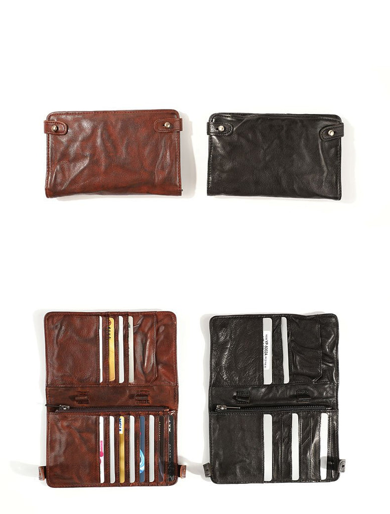Design: Retro Black Sheepskin Leather Men's Long Wallet Clutch Wallet Brown Phone Wallet Zipper Clutch Wallet For Men