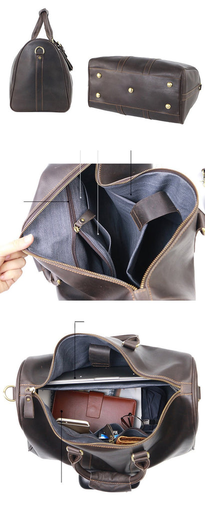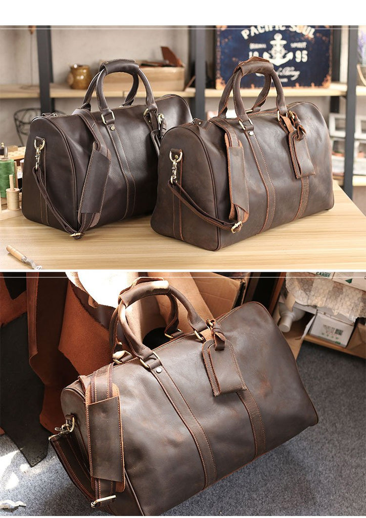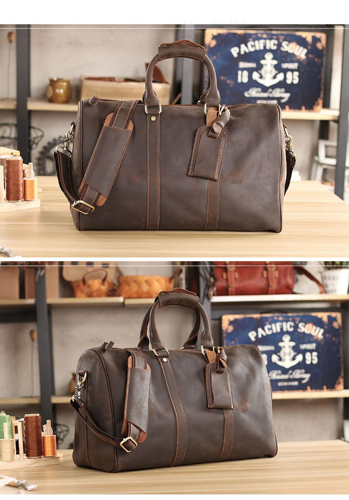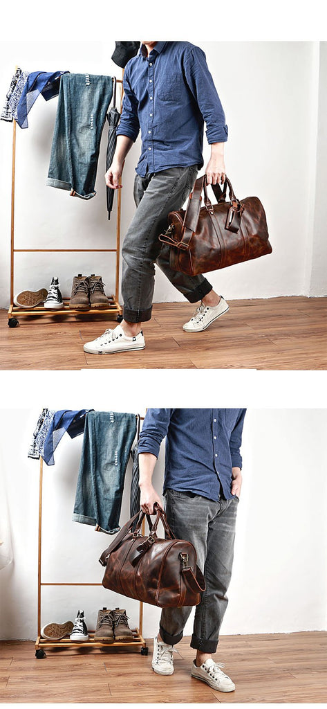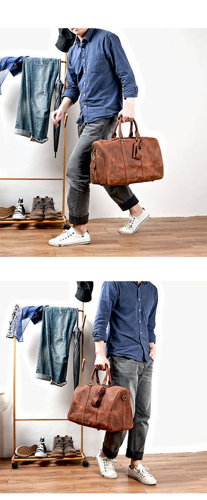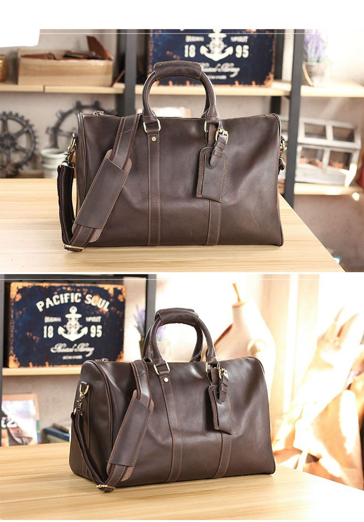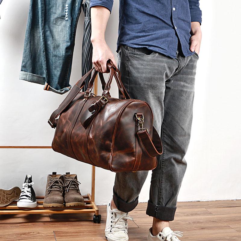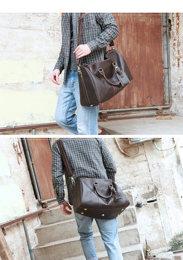 Style: Black Leather Mens Casual Large Travel Bags Shoulder Weekender Bag Duffle Bag For Men