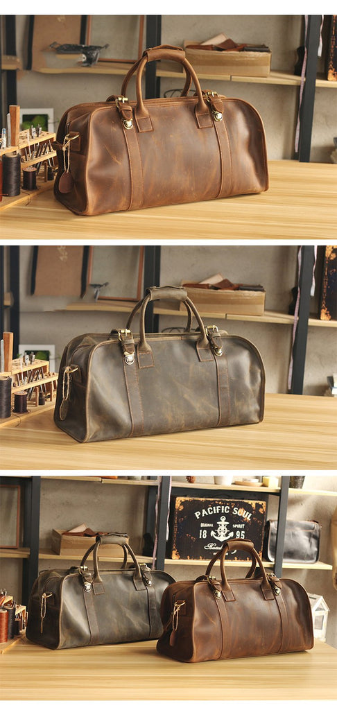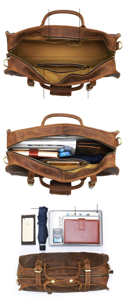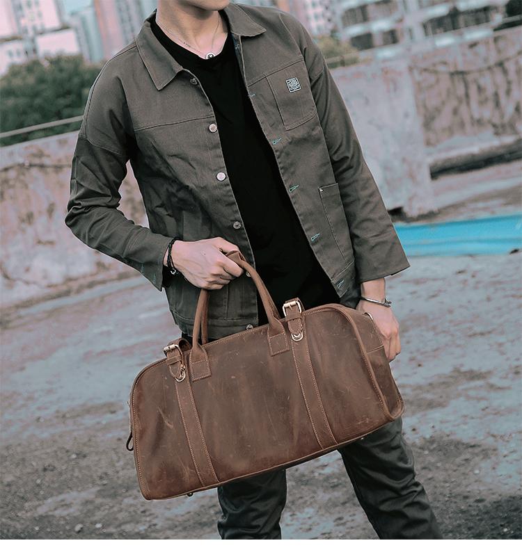Style: Black Leather Mens Casual Large Travel Bags Shoulder Weekender Bags Brown Duffle Bag For Men