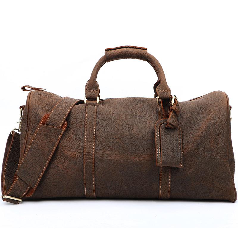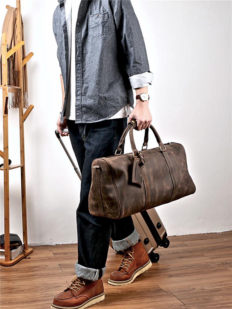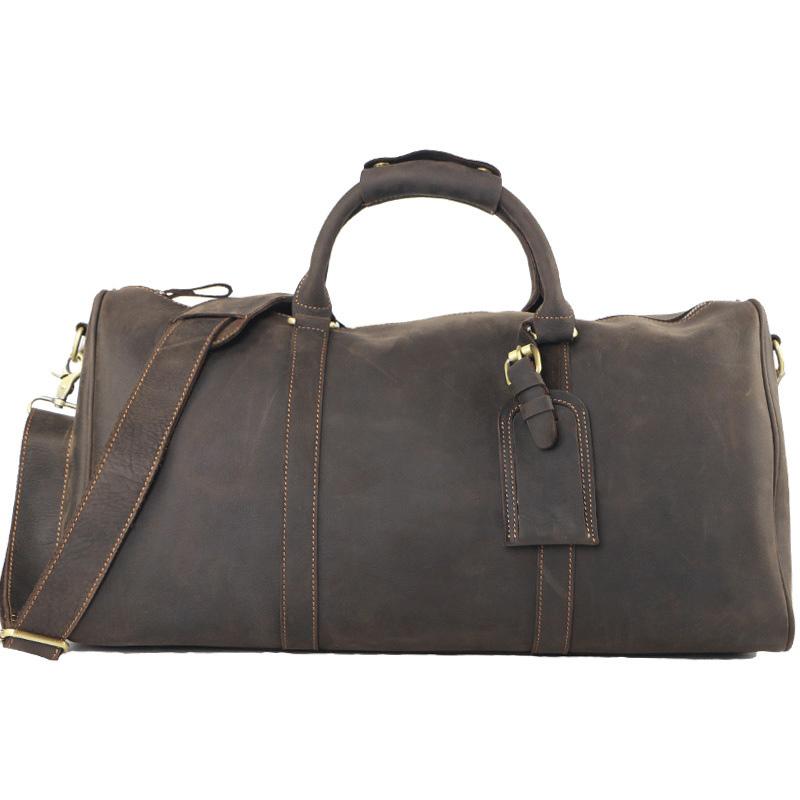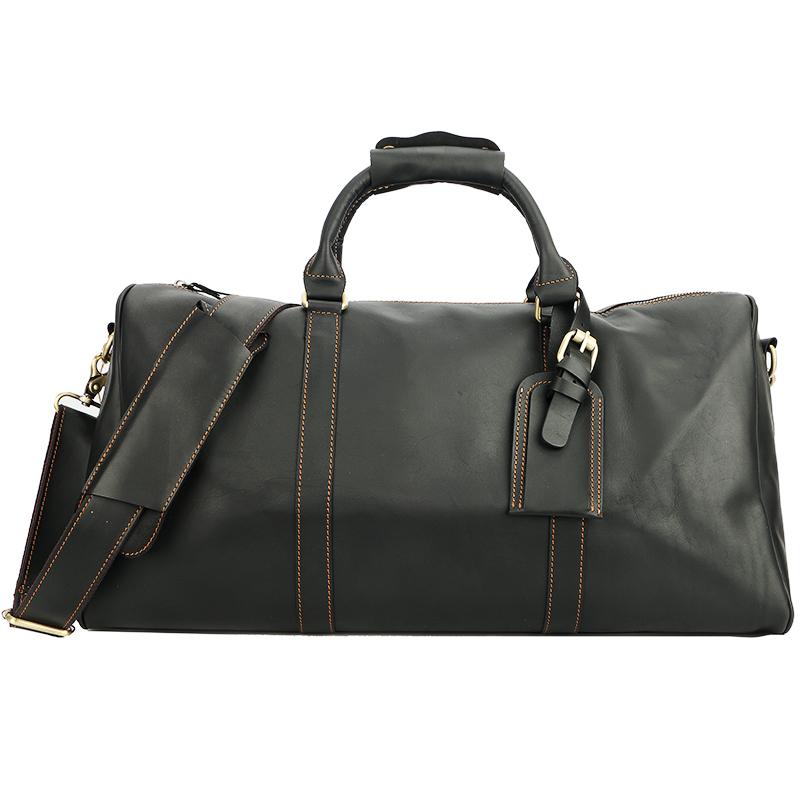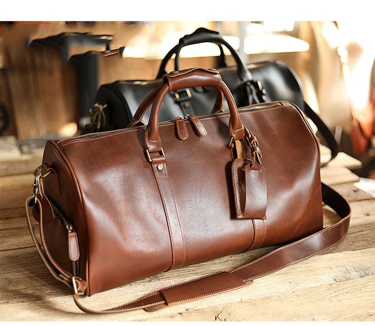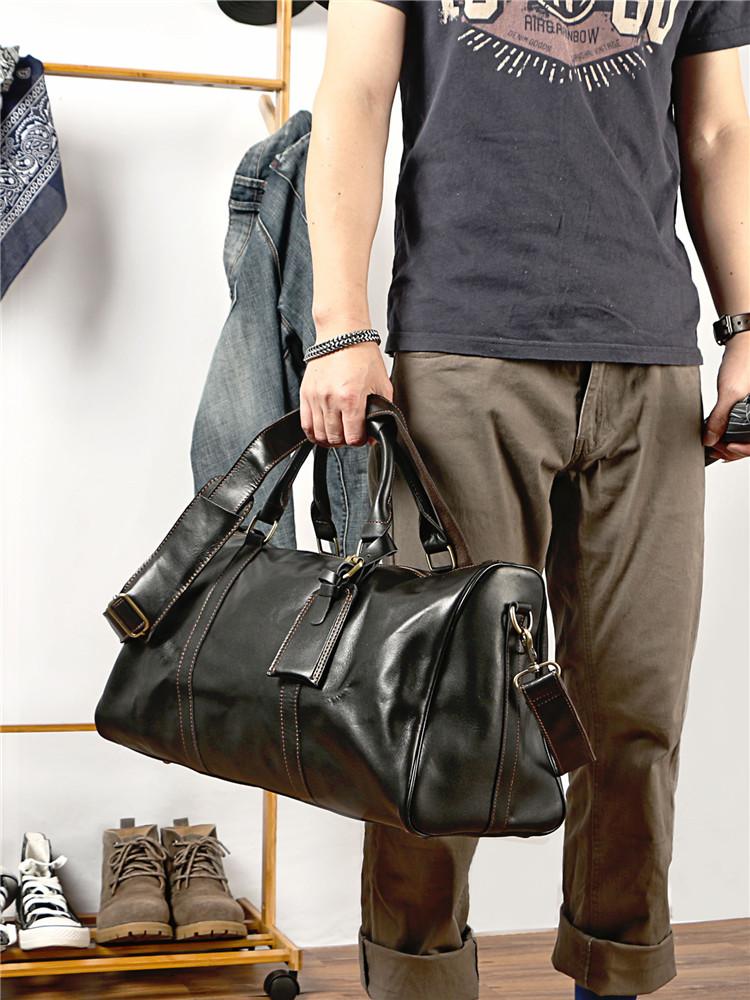 Black Leather Mens Casual Large Travel Bags Shoulder Weekender Bags Brown Duffle Bag For Men