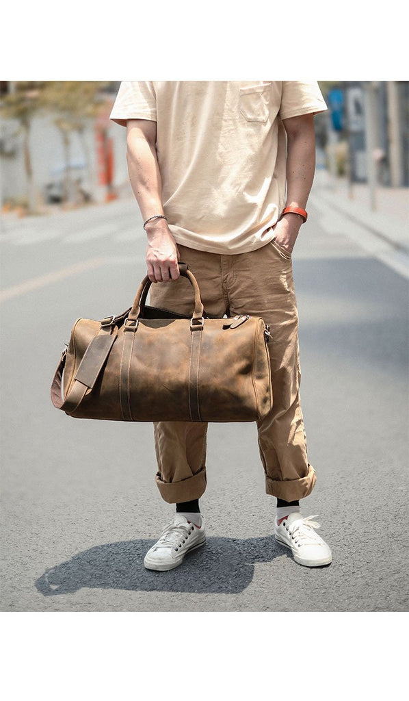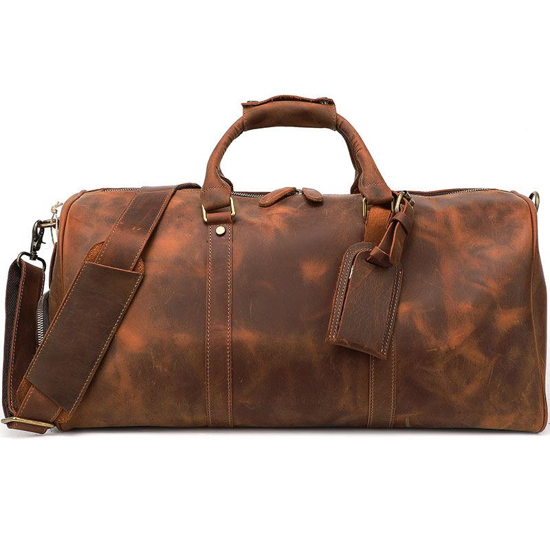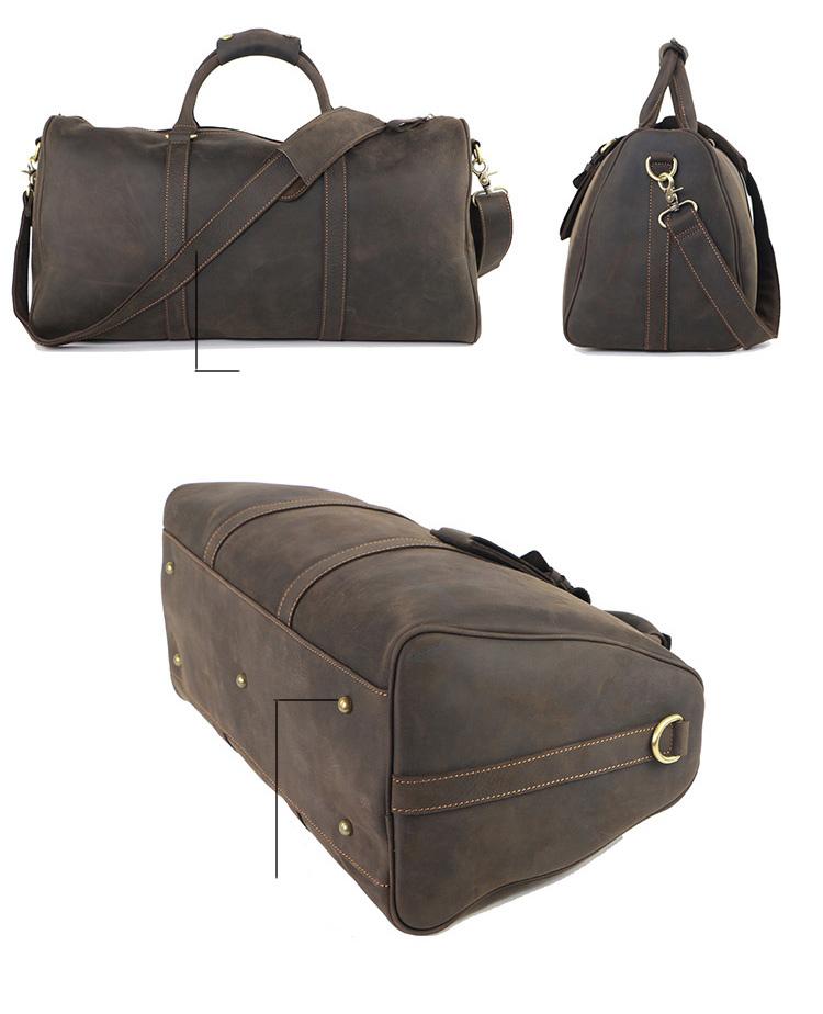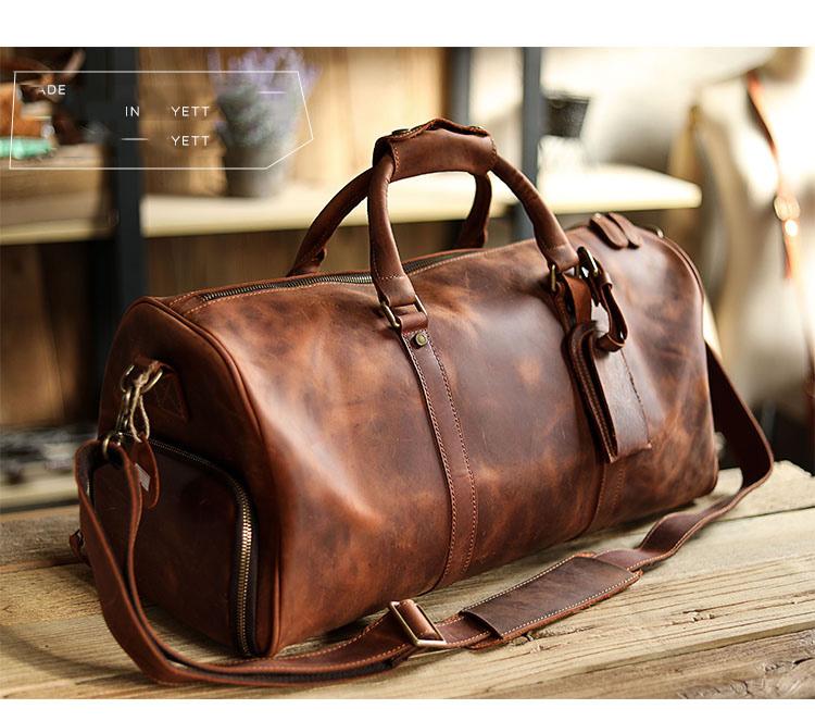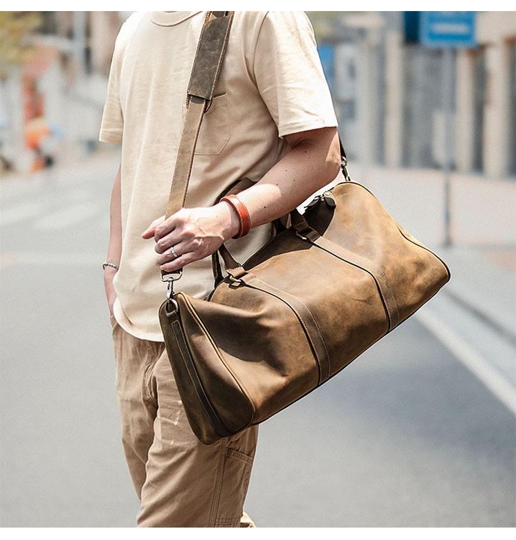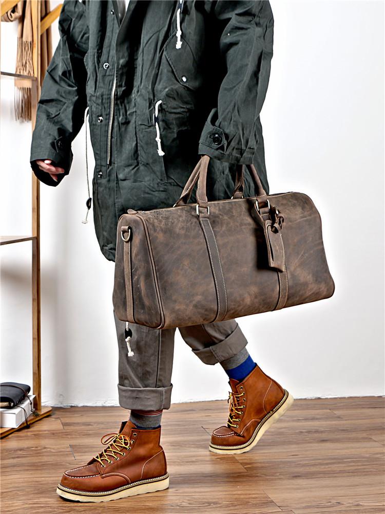 Black Leather Mens Casual Large Travel Bags Shoulder Weekender Bags Brown Duffle Bag For Men