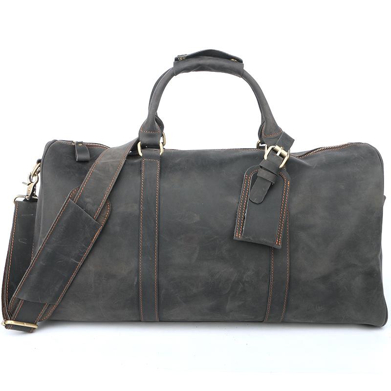 Design: Black Leather Mens Casual Large Travel Bags Shoulder Weekender Bags Dark Gray Duffle Bag For Men
